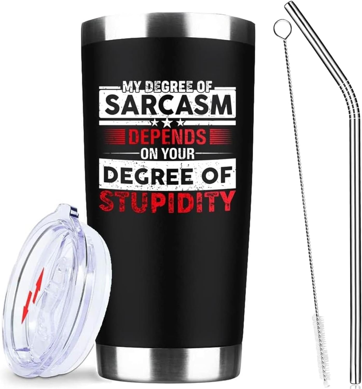My Degree Of Sarcasm Depends On Your Degree Of Stupidity 20 Oz Insulated Tumblers with Lid & Straw | Double Wall Stainless Steel Tumbler Cups Coffee Mug | Funny Birthday Christmas Gifts Idea (Black)