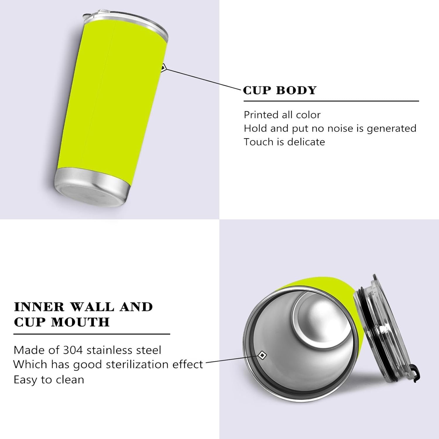 Ice Drinks and Hot Beverage : There is an vacuum insulation layer on the outer wall of the inner tendon, which enhances the effect of keeping the temperature. With the double-wall vacuum technology, our travel mug can keep drinks hot for around 6 hours and cold for around 18 hours.
