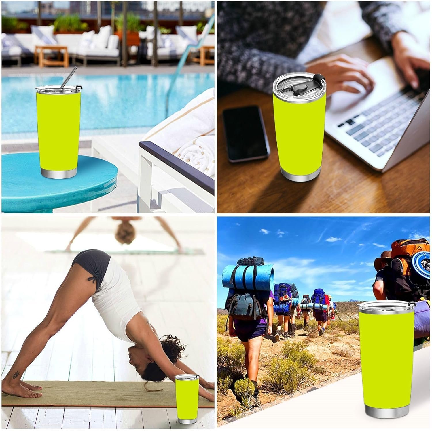Neon Yellow Green 20 Oz Stainless Steel Vacuum Insulated Tumbler with Lids and Straw Double Wall Water Travel Mug for Hot and Cold Drinks Coffee Cup for Home Office