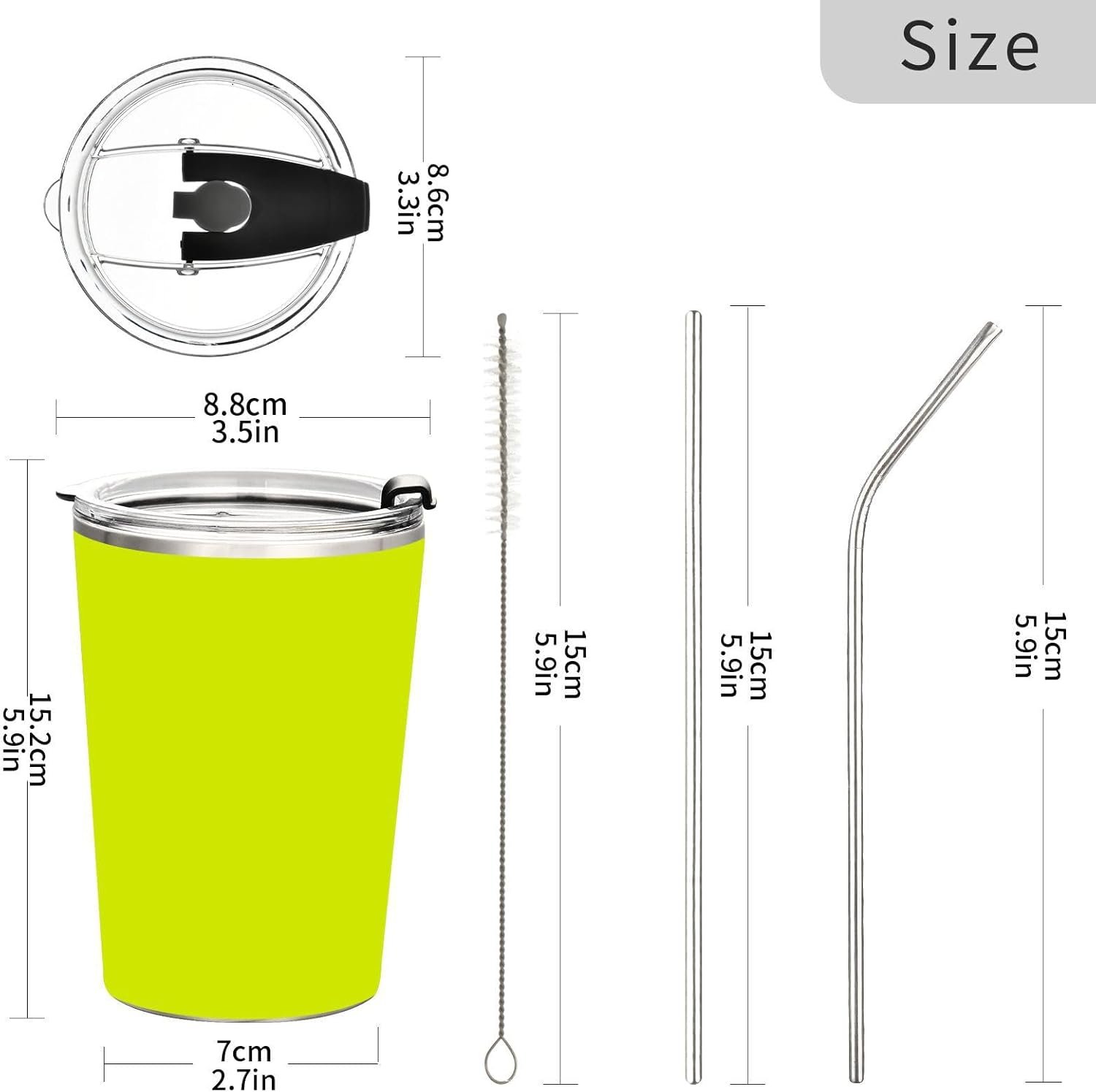 Stainless Tumbler Capacity : size: 20oz : 3.3in*6.6in*2.7in or 12oz : 3.5in*5.9in*2.7in . The 20oz tumbler size is compact enough to fit in most car cup holders.