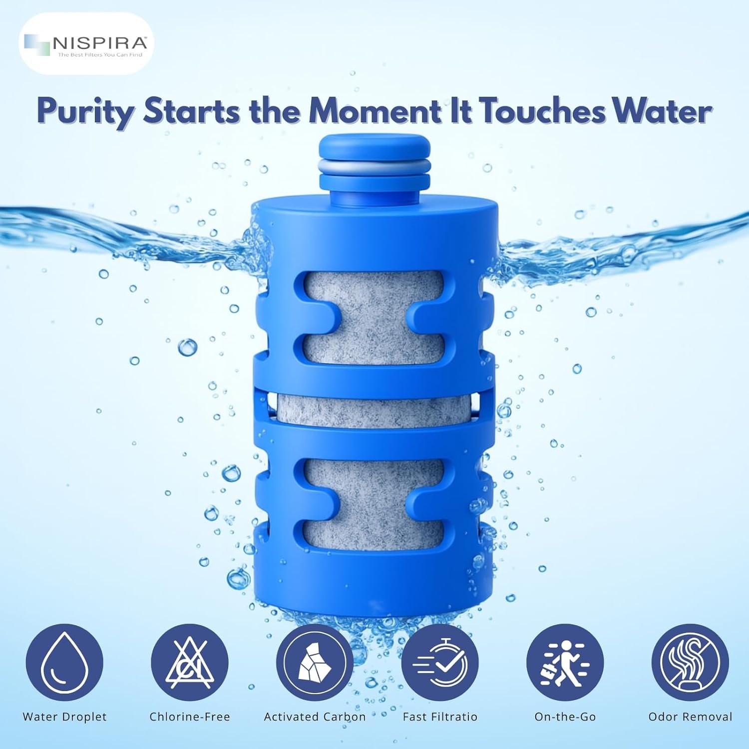 Nispira Premium Carbon Water Filter – Compatible with Philips GoZero Fitness Water Bottle Powerful filtration for Philips GoZero Fitness Water Bottles. Engineered with advanced activated carbon fibre, this high-performance filter effectively reduces chlorine, odors, and taste impurities — delivering clean, great-tasting water wherever you go. Each filter purifies up to 52 gallons, replacing approximately 333 single-use 20 oz bottles, helping you stay hydrated while reducing plastic waste. Size: 2.5″ x 1.1″ x 1.1″. Easy to install. The filter is designed to improve flow rate and enhance water quality. Each pack includes 3 filters. Perfect for GoZero water bottles, this filter lets you enjoy fresh, clean water wherever you are — ideal for fitness, travel, hiking, and outdoor adventures. Stay hydrated with confidence and convenience.