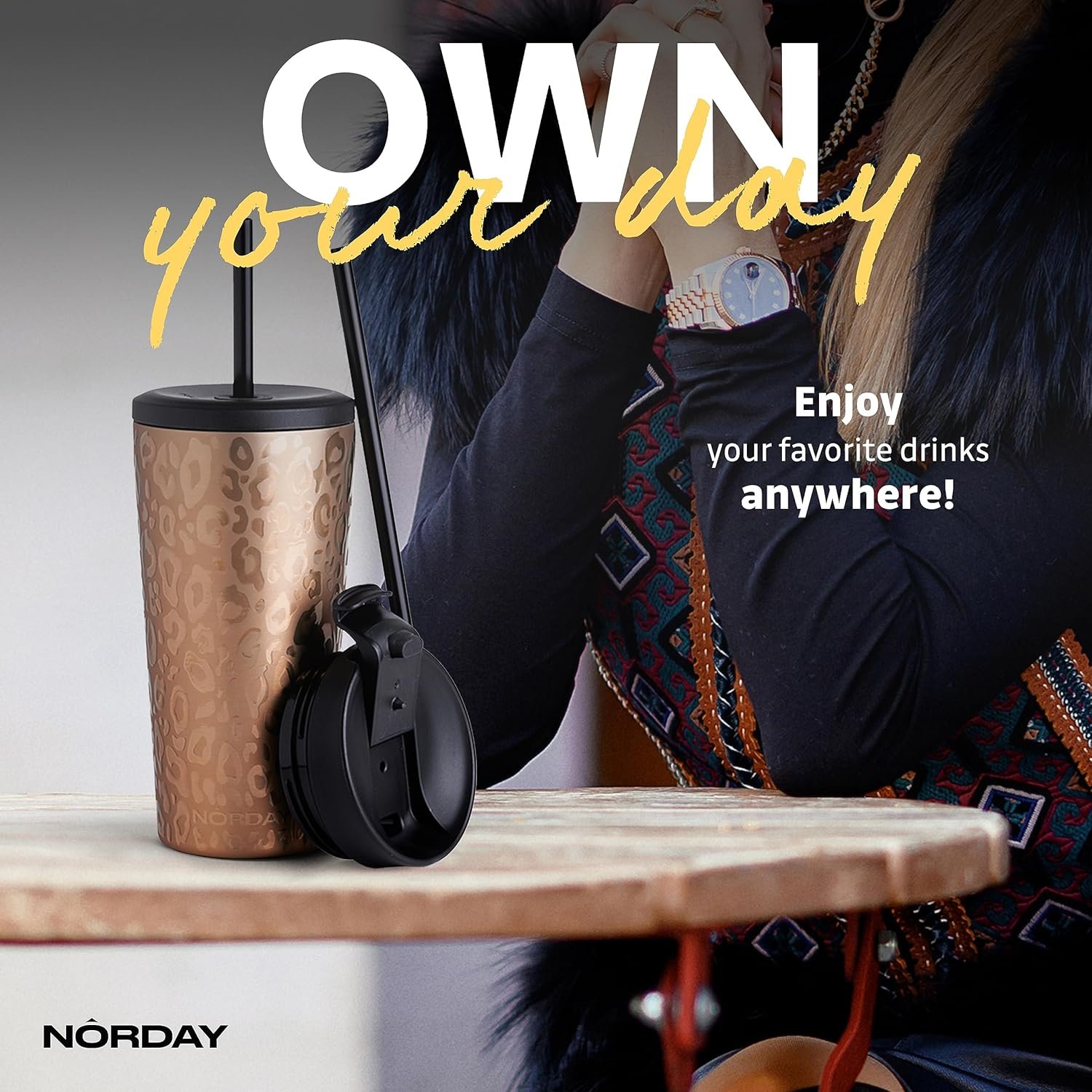 NORDAY | Tumbler with Lid and Straw – Bloom 20oz – Rose Gold Leopard Insulated Tumbler – Stainless Steel Tumblers – Double Wall Coffee Mug – Keeps Temperature for 24hr – 2 Anti Spill Lids and 2 Straws