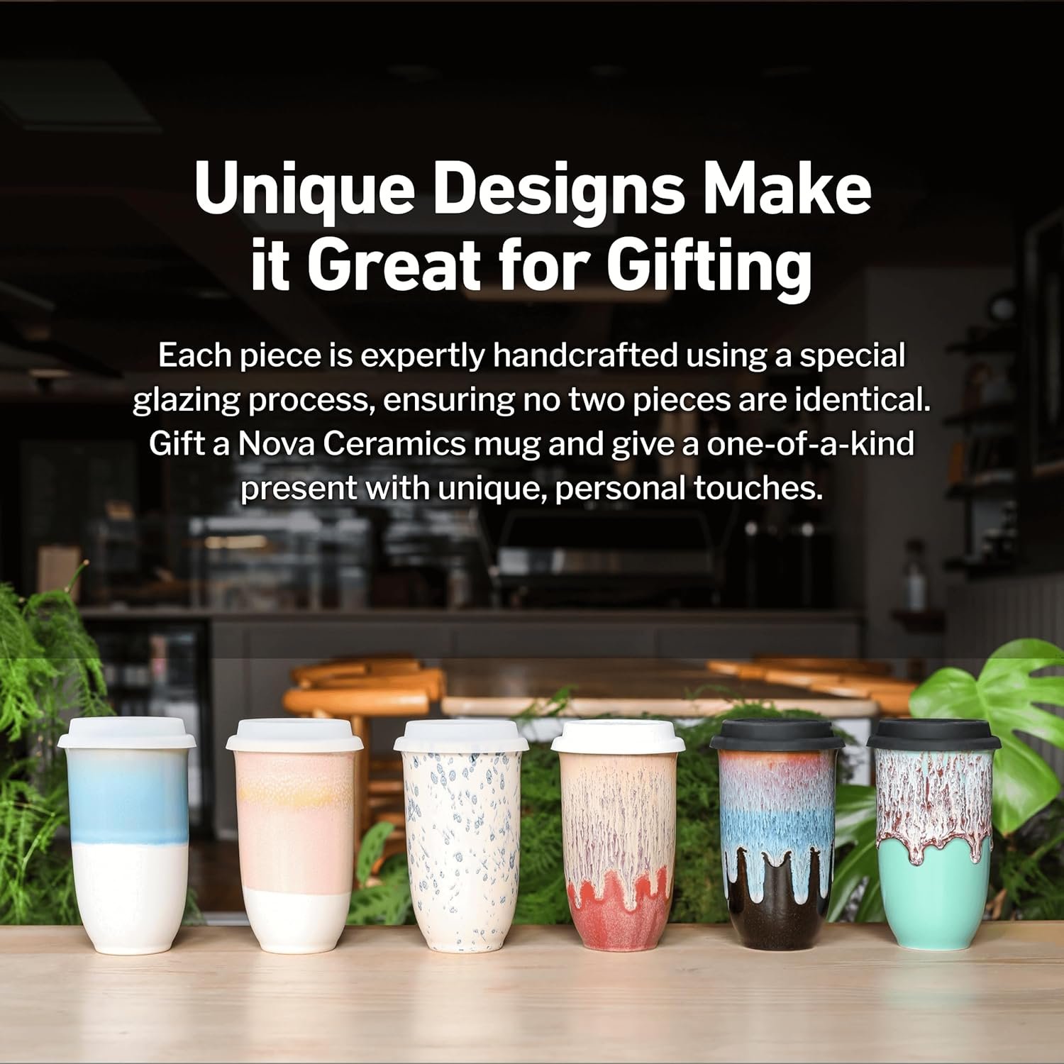 UNIQUE DESIGNS – Experience the tranquility of Dune. Its sandy clay glaze evokes the beauty of desert dunes, bringing a sense of peace and nature to your coffee moments. No two travel coffee cups are the same and have their own individual detailing making them one of a kind