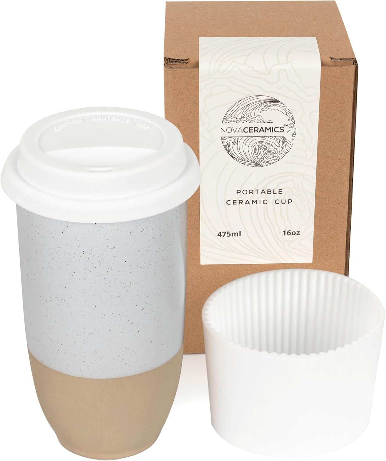 NOVA CERAMICS Travel Mug – Coffee Mug Travel – Microwave & Dishwasher Safe Coffee Clay Tumbler – Gifts For Women Men Him Her – 16oz – Dune