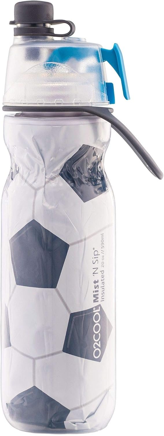 O2COOL Mist ‘N Sip Misting Water Bottle 2-in-1 Mist And Sip Function With No Leak Pull Top Spout Reusable Sports Water Bottle – 20 oz (Soccer)