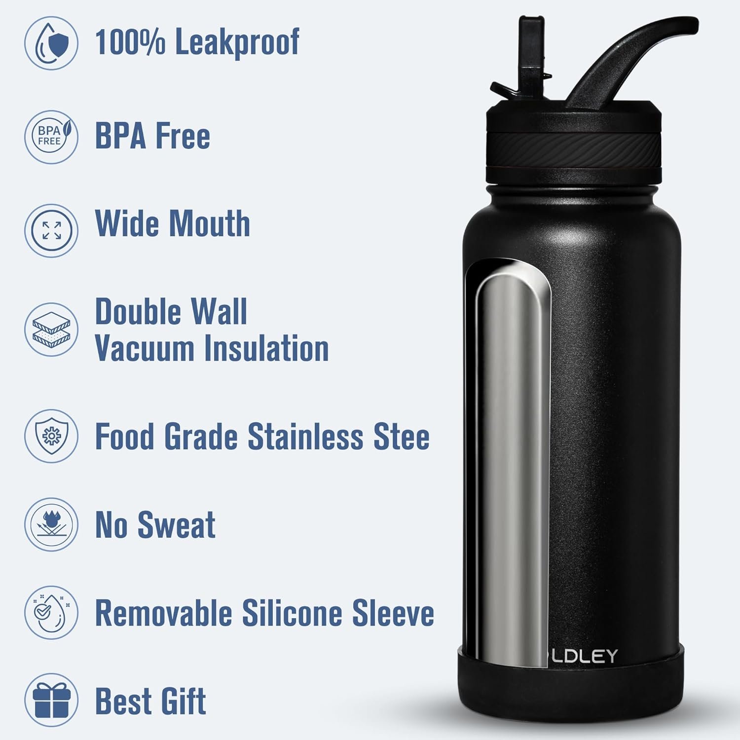 INSULATED WATER BOTTLE: OLDLEY metal water bottle insulation maintains drinks cold for up to 24 hours and hot for up to 12 hours. Vacuum insulation ensures superior temperature retention, keeping drinks cold for hours, ideal for outdoor events or traveling.