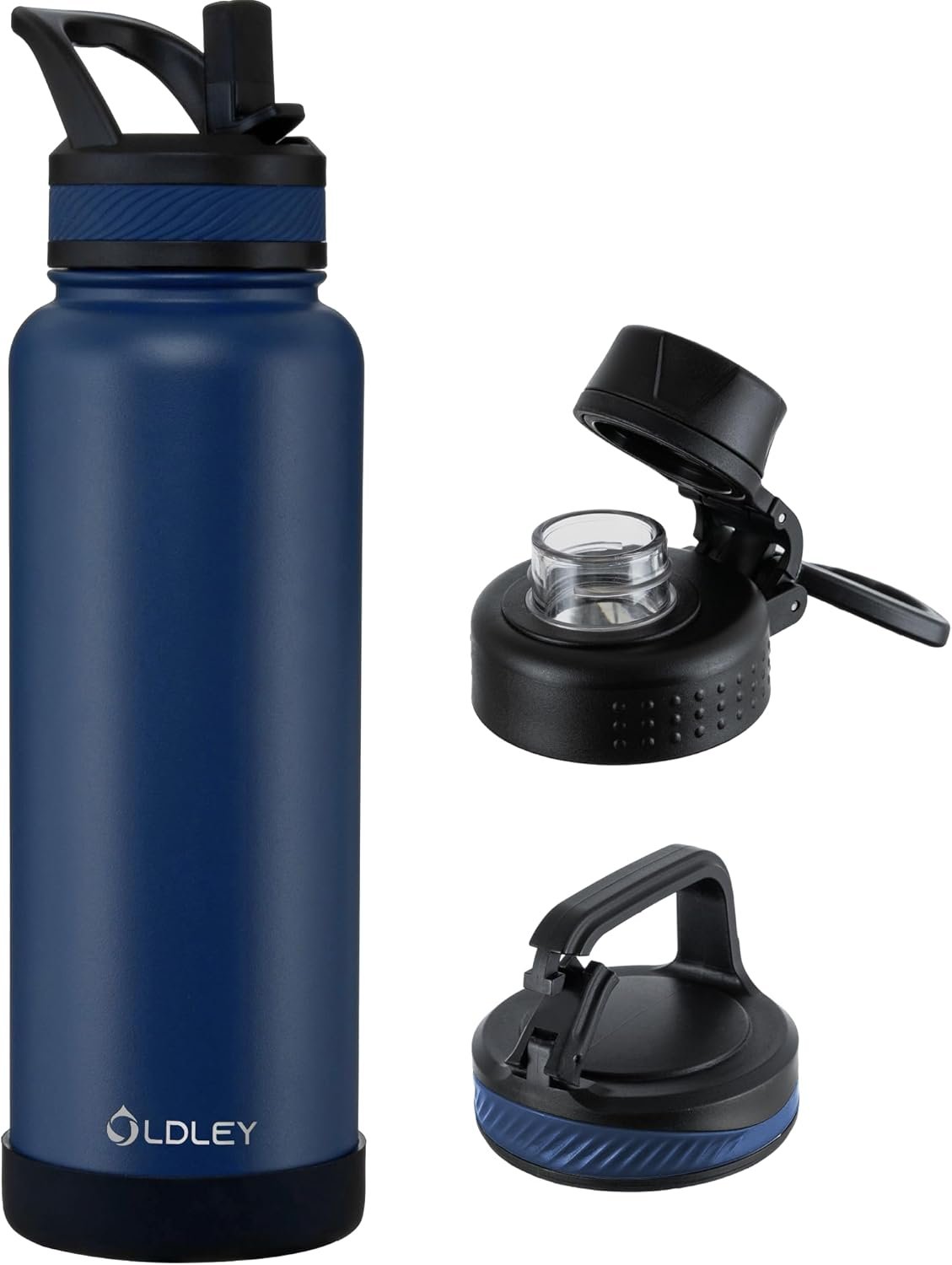OLDLEY 40 oz Insulated Water Bottle With Straw, Stainless Steel Sports Water Cup Flask with 3 Lids(Straw, Spout and Handle Lid) Double Walled Travel Thermal Canteen Mug,Navy Blue