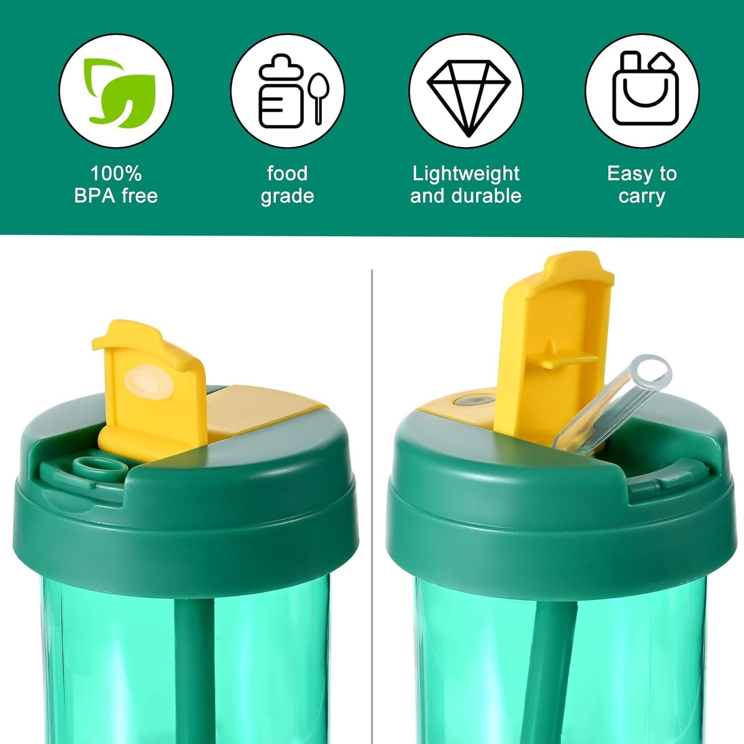 Reusable Water Bottle with Dual Function: The two-way drinking system (straw + direct drinking) and leak-proof seal make this water bottle bulk set perfect for the gym, hiking, travel, and class