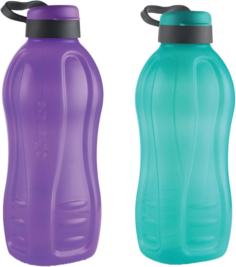 Oliveware Jumbo 2 Litre Water Bottle, 100% Leak Proof, BPA Free Premium Plastic Bottle, for Home, Office & Gym, Sturdy with Holder, Pack of 2 (Purple & Blue)
