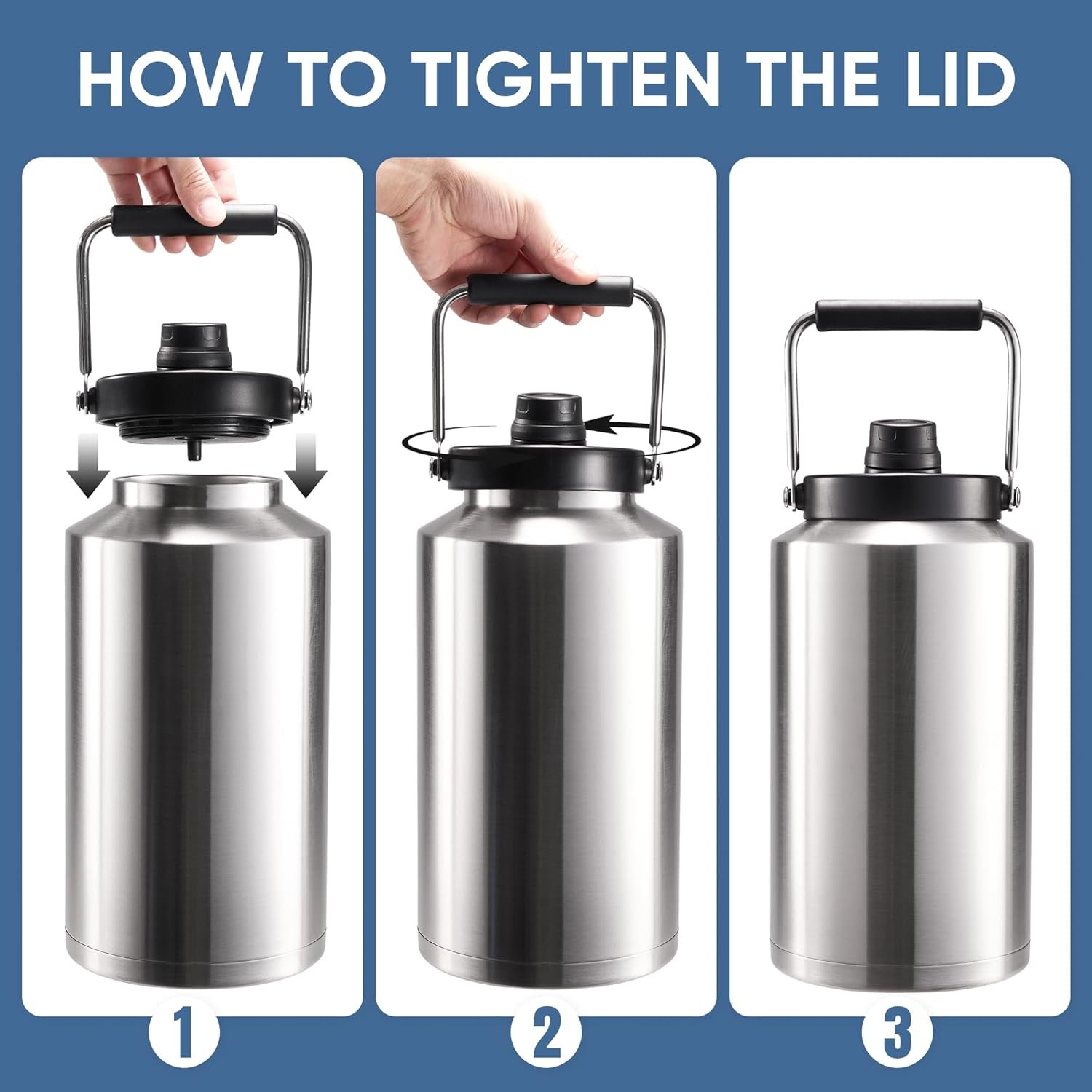 100% LEAKPROOF:Our stainless steel gallon jug Designed for worry-free mobility. The secure screw-on lid with a reliable silicone gasket creates a leakproof seal, preventing spills in your truck, tool bag, or backpack.