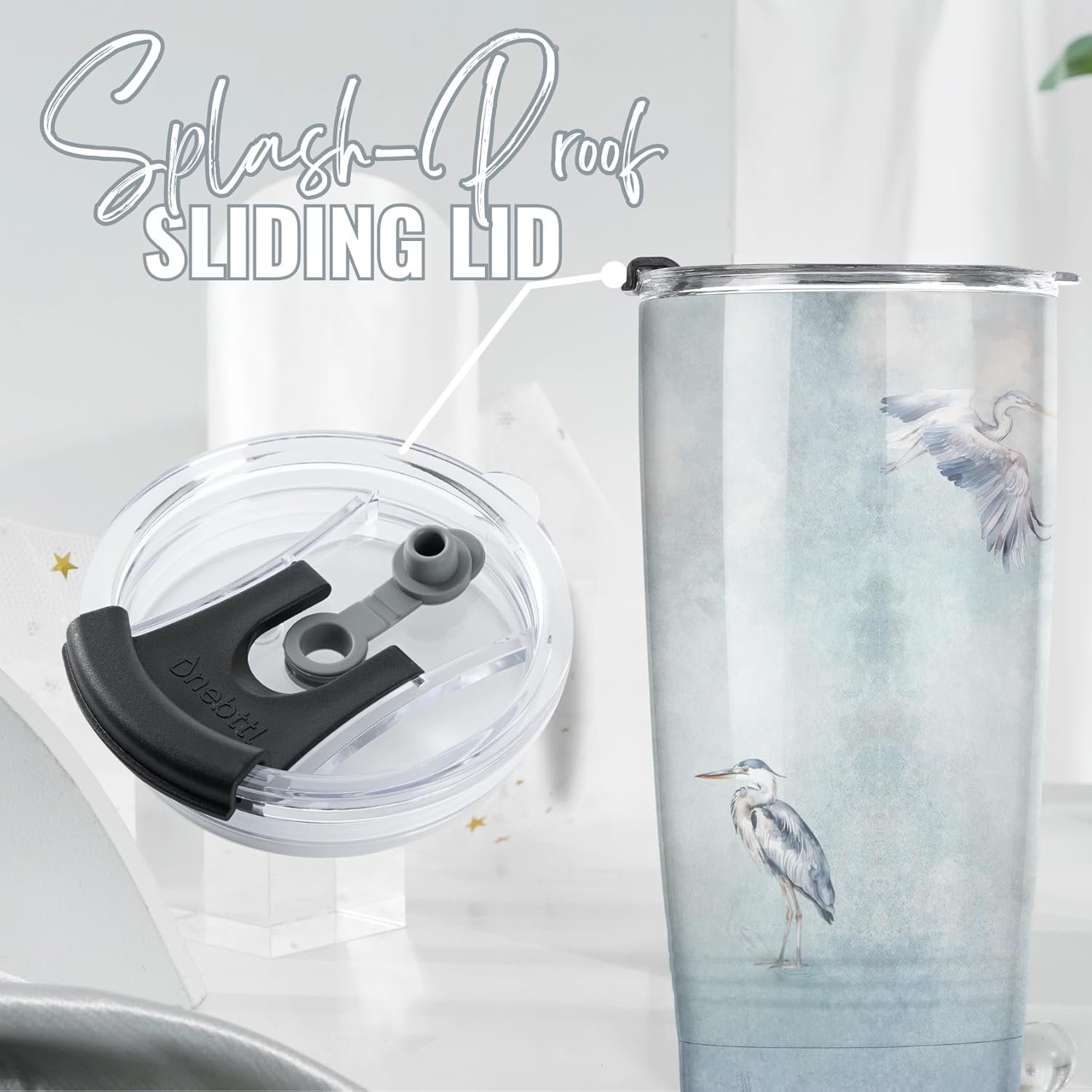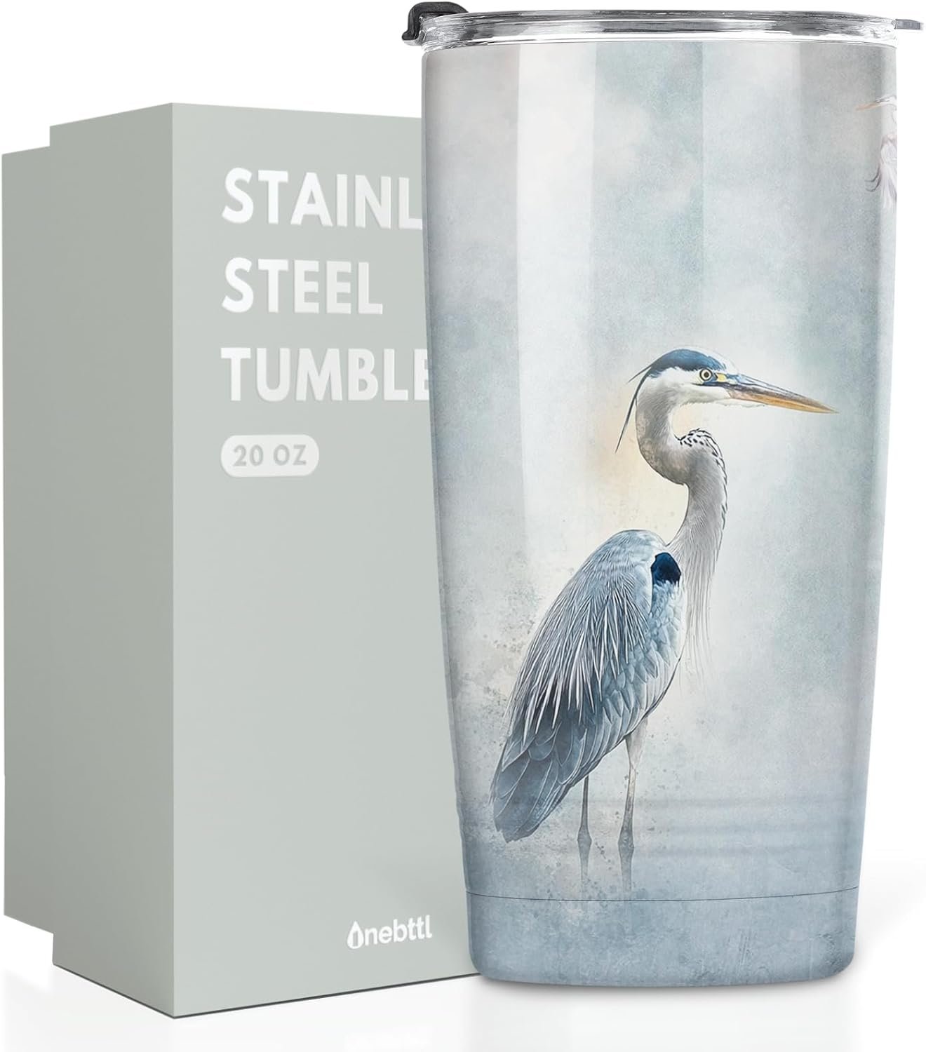 Onebttl Blue Heron Gifts with Watercolor Paint Wall Art on Tumbler, Insulated 20 oz Stainless Steel Travel Tumbler with Lid