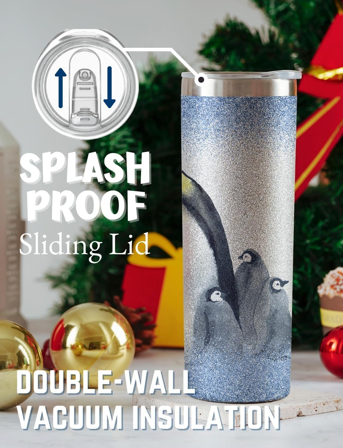 Perfect Gifts for Penguin lovers – Unique 20oz glitter tumbler with watercolor design, it’ll be absolutely irresistible to your friends who love Penguin. Place the cup under a light source and it will look even better!