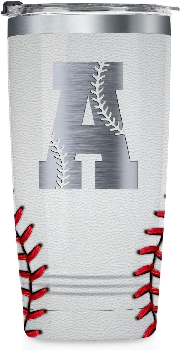 Onebttl Personalized Baseball Gifts for Teen Boys, Men, Coaches, 20oz Stainless Steel Tumbler with Laser Etched Initials for Baseball Players, Lovers, White – A