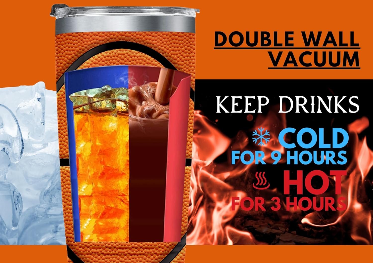 Keep Drinks Hot or Cold: The double-wall vacuum insulated design keeps drinks cold for 9 hours or hot for 3 hours. Cold drinks can be enjoyed cooler on summer days and hot drinks will stay hotter on cold days.