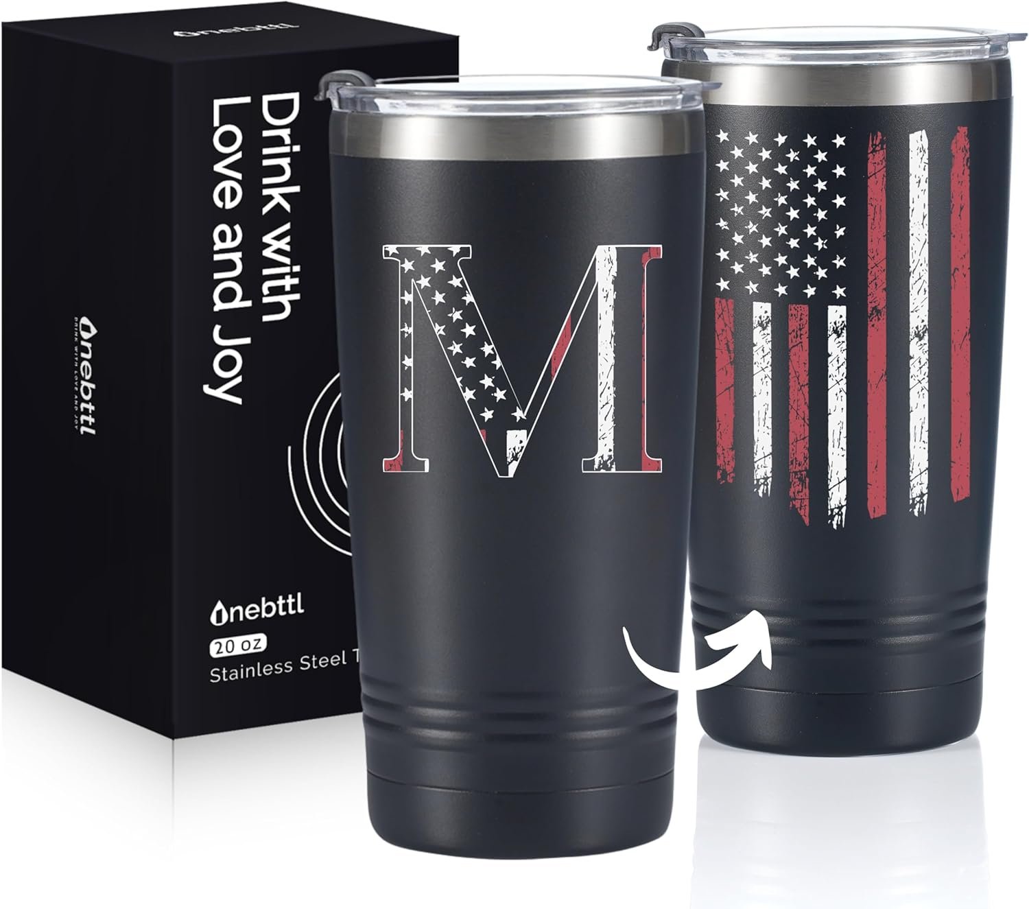 Onebttl Personalized Gifts for Men, Initial Birthday Gifts for Dad, Grandpa, Uncle, Brother, Friends, American Flag Tumbler – 20oz Insulated Stainless Steel Tumbler – M