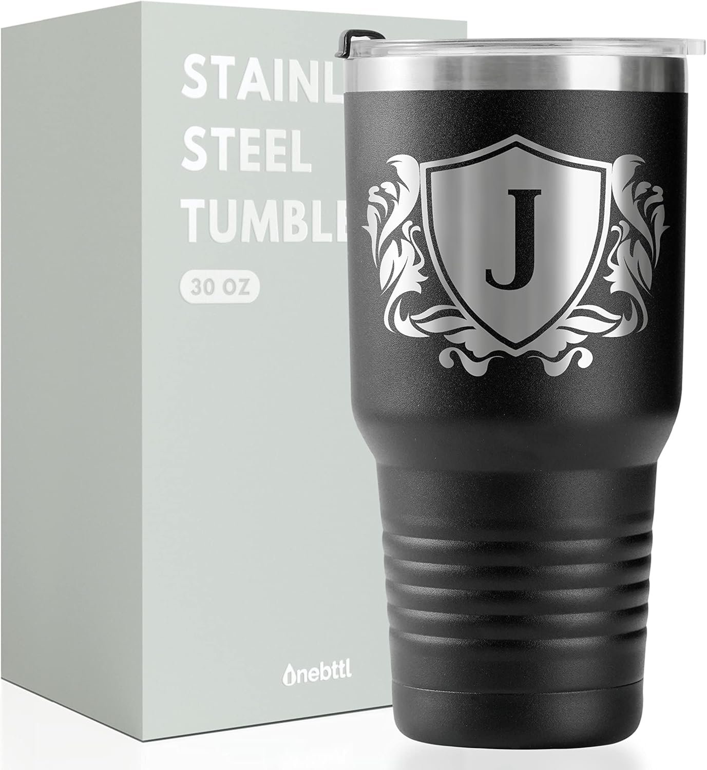 Onebttl Personalized Gifts for Men with Initials, Monogrammed Travel Tumbler for Him, Custom Coffee Cups, Unique Birthday Christmas Gifts for Men who Have Everything, Black, 30oz, J