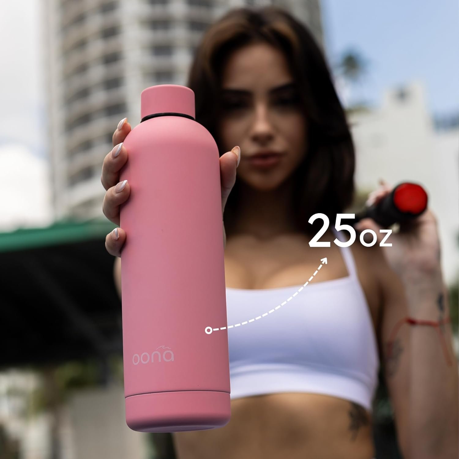 Charming Design: The OONA reusable water bottle comes in an array of colors, each with a matte powder coat finish, offering a chic look to match your personal style.