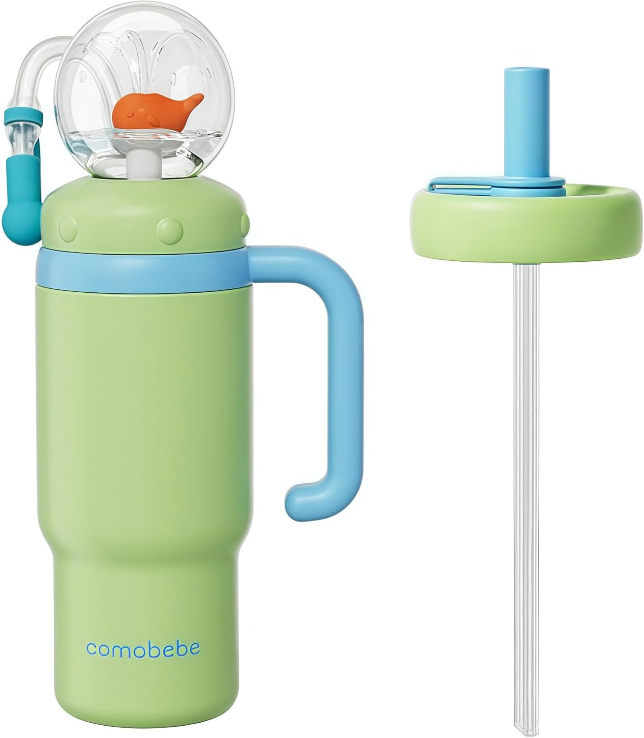 Patented FreeSip spout designed for either sipping upright through the built-in straw or tilting back to swig from the spout opening