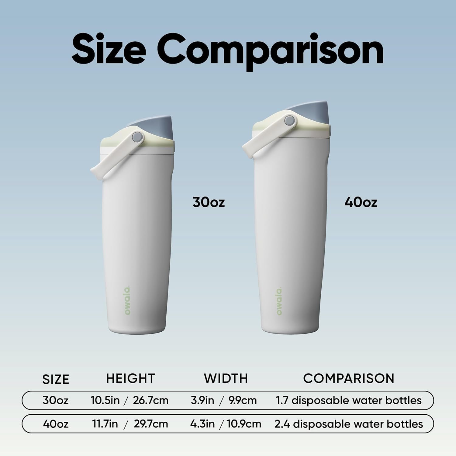 Designed for living life to the fullest, the Owala FreeSip Sway is like our original FreeSip—with even more travel-friendly features. In addition to our patented 2-in-1 FreeSip spout (you know, the one with the built-in straw and open swig option), this 40oz stainless steel water bottle holds plenty of water without being oversized. The sturdy bucket handle makes it easy to grab and go—not to mention comfy to hold. The tapered shape fits pretty much anywhere you’d stash a bottle, including most cupholders—whether it’s your car or your spin bike. The triple-layer insulation keeps drinks cold for up to 24 hours, and the sweat-proof exterior means no slippery hands or water rings.The wide-mouth opening makes cleaning easy and adding ice even easier. Plus, it’s made with BPA-free, durable materials. Sway is the ultimate hydration companion that goes with the flow of your day. It’s the ultimate gift for anyone who needs to up their hydration game. (Yourself included.).