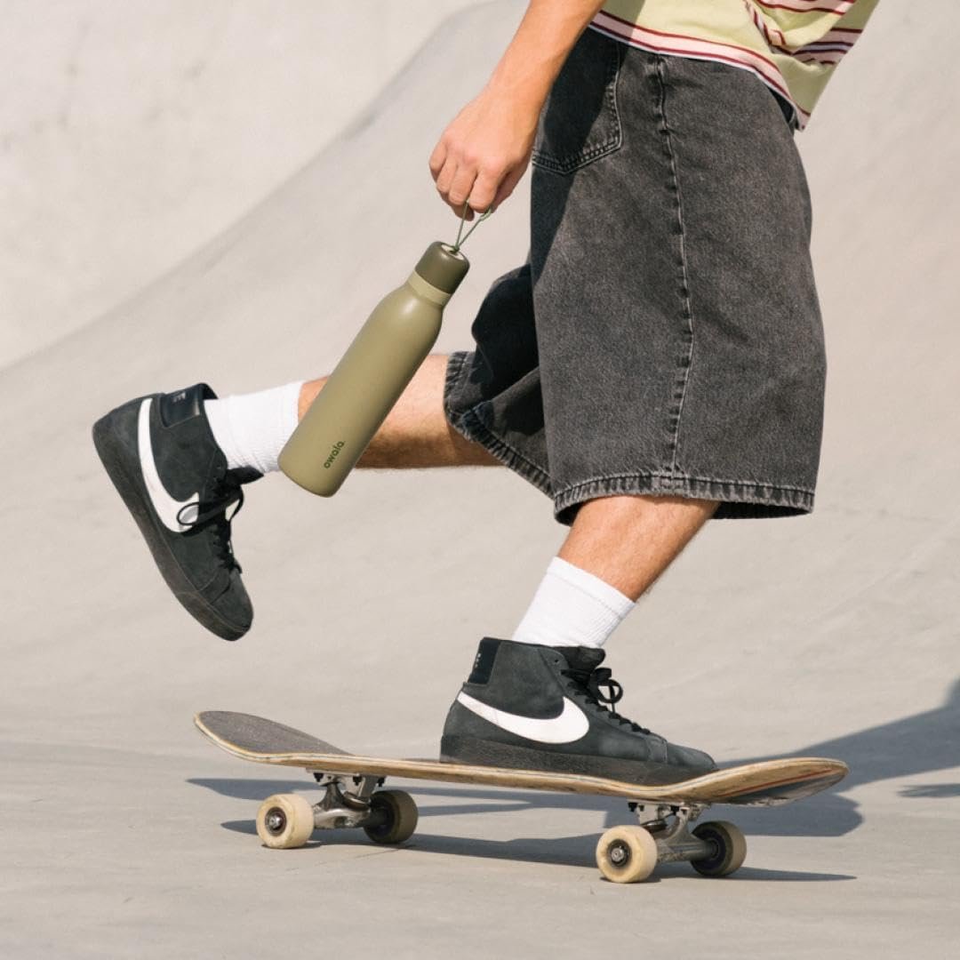 The Owala FreeSip Insulated Stainless-Steel Water Bottle with Locking Push-Button Lid easily tackles every thirst. With a built-in, easy-clean straw and a wide-mouth opening, the FreeSip reusable bottle is designed for drinking two different ways: sipping upright through the straw or tilting back to swig from the wide-mouth spout opening. Add in a push-to-open lid and playful colors, and staying hydrated has never been simpler—or more fun. Additional features include double-wall insulated stainless steel that keeps drinks cold up to 24 hours, a carry loop that doubles as a lock, a cup holder-friendly base, and a wide opening for easy cleaning and adding ice. The Owala FreeSip Insulated Stainless-Steel Water Bottle with Locking Push-Button Lid is available in three sizes: 24-Ounce, 32-Ounce, and 40-Ounce. Lid is dishwasher safe; hand wash cup. Not for use with hot liquids. Manufacturer’s limited lifetime warranty.