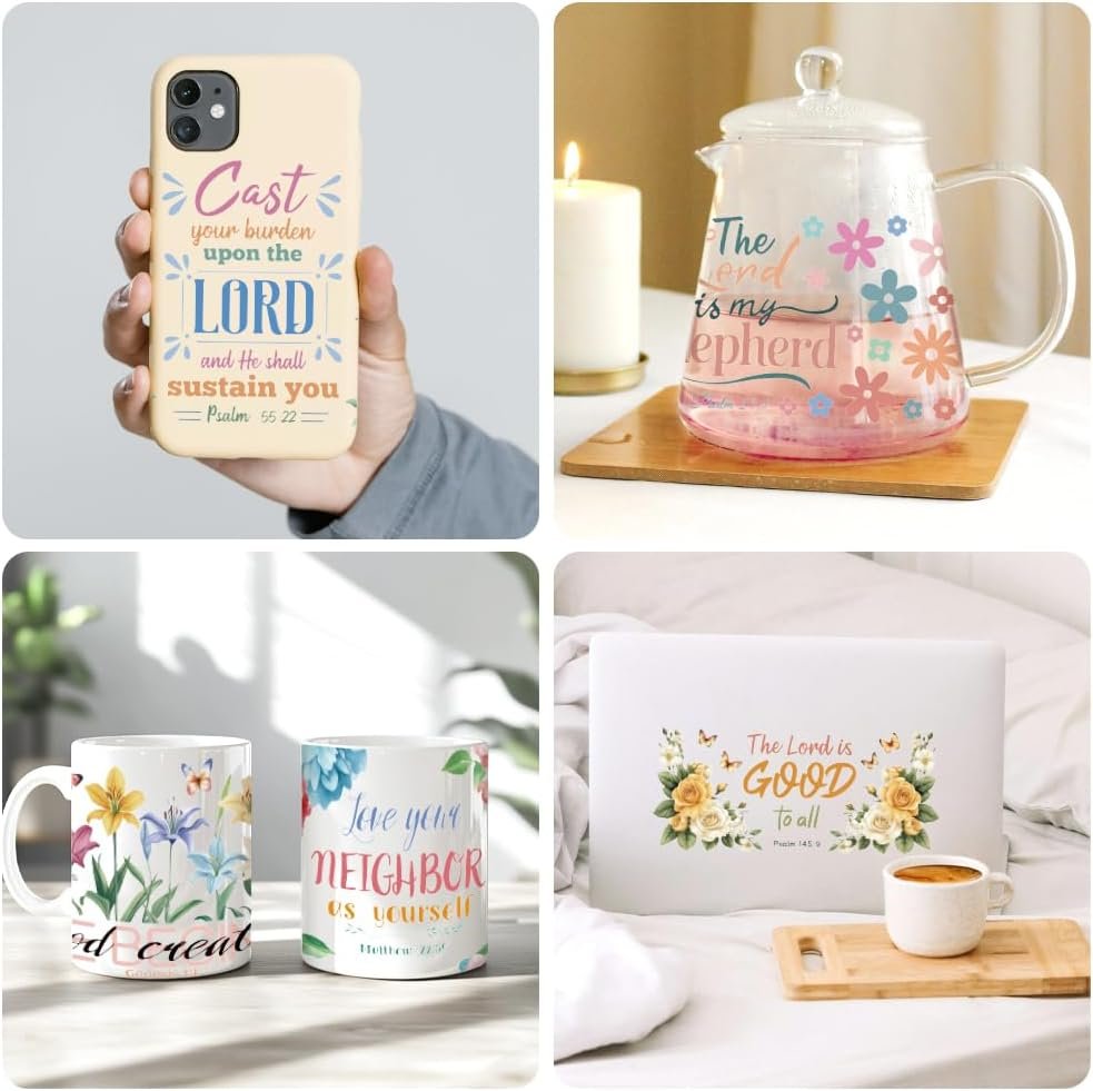 Peacoblue UV DTF Cup Wraps Transfer Stickers Bible and Flowers Pattern, 10 Sheets Waterproof Custom Vinyl Transfer Sticker 16oz Coffee Glass Cup Tumbler Bottle Mug Decals for Men Women