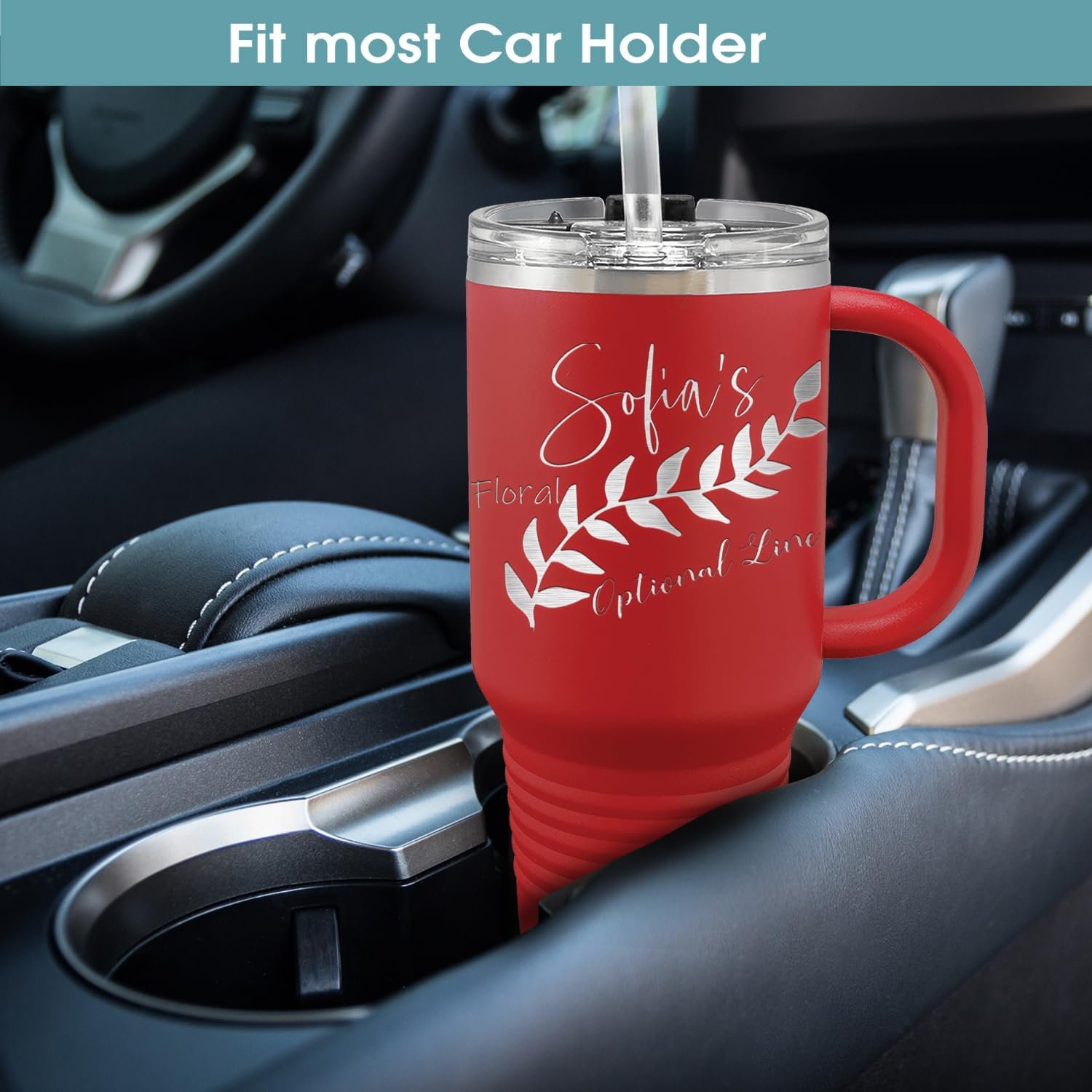 *30 oz Personalized Travel Tumbler with Handle and Straw, engraved with your name and one of 30 stunning designs, sleek monograms to bold quotes, perfect for gifting! *Crafted by iProducts US in durable stainless steel, this tumbler boasts a spill-proof lid, reusable straw, and comfy handle for easy carrying. *Double-wall insulation keeps drinks ice-cold for 24+ hours or hot for 12+, perfect for work, gym, gifting, Bridesmate, or travel. *The Red color hides scratches, blending style and function. Dishwasher-safe and BPA-free, it’s built to last and impress. *Personalized Custom Designs like name, Cruise Ship, Palm Tree Vacation Mug, Birthdays, Gift ideas, Mama Bear, Christmas Gifts, Mother’s Day, Christmas gift for dad and Mom, Military Personalized Gift