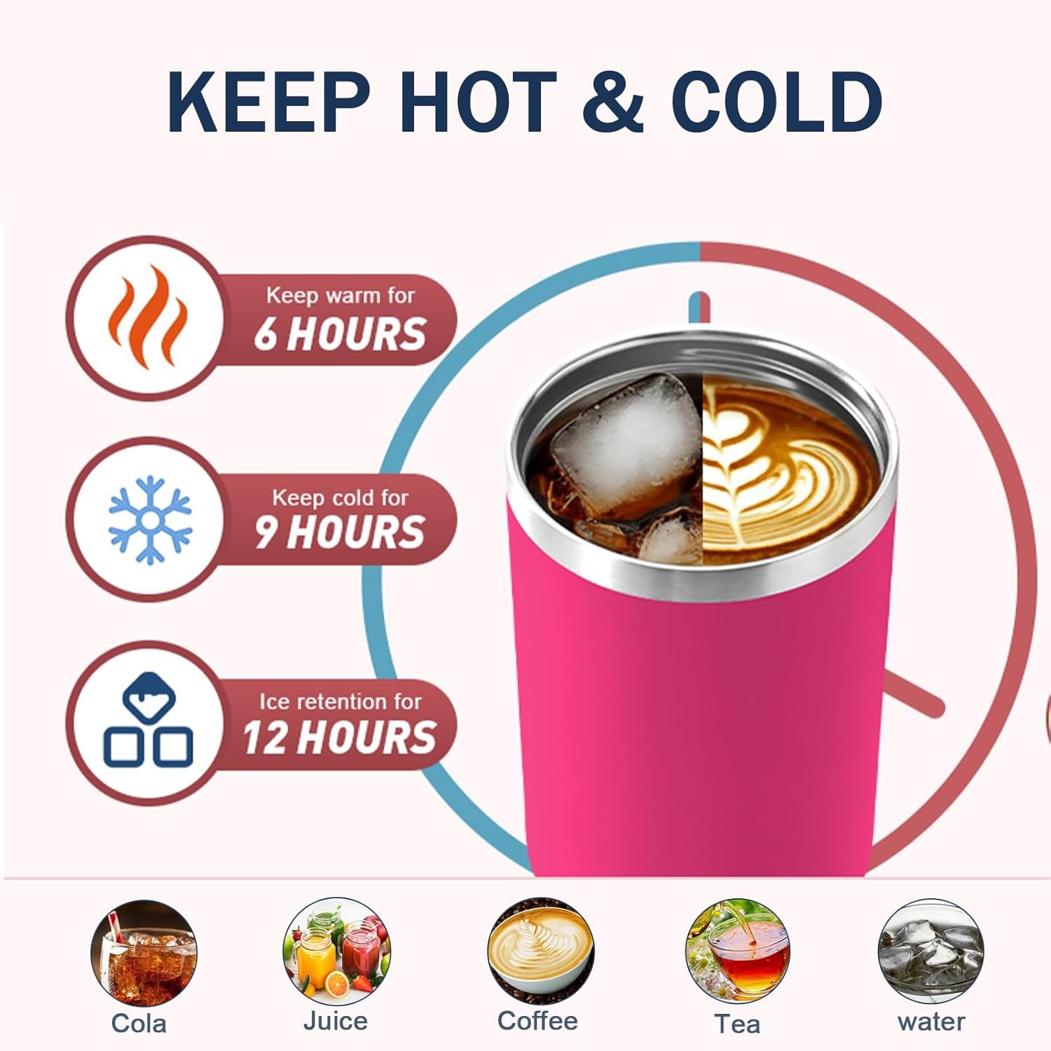 [Comfortable & Convenient]: Our 40oz tumbler features a double-walled, vacuum-sealed construction that keeps beverages iced for 12 hours, cold for 8 hours and hot for 6 hours, so you can enjoy your drinks at the ideal temperature, anytime, anywhere. The insulated cup is made of 304 food-grade stainless steel, which is not only durable, but also rust-free and odor-free, ensuring a long-lasting and hygienic drinking experience