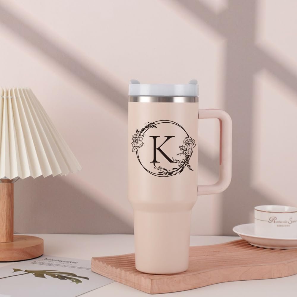 Personalized 40oz Tumbler Cup with Initials.Cup with Letter K 40oz Tumbler with Handle.Custom Tumbler Cup with Letter.Initial Monogram Tumbler Mug Gifts for Women Birthday Christmas.