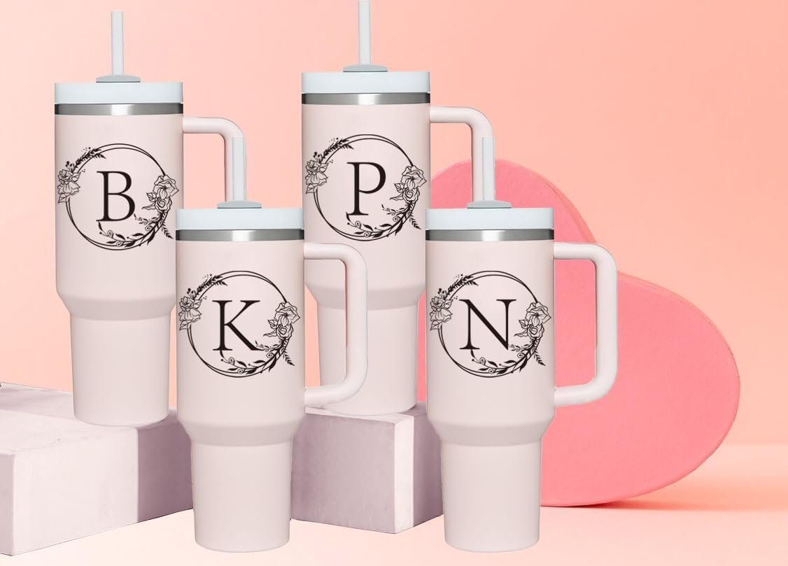 ❤ PERSONALIZED TUMBLER – Unique Custom Cups Personalized Initial 40oz Tumbler with Handle.Personalized Customized Coffee Tumbler Mug Gifts.Birthday Christmas Gifts for Men Women Friends.Novelty Party Graduation Wedding Gifts.