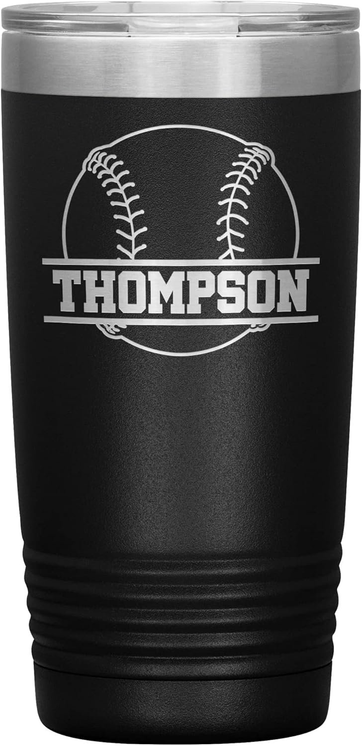 This stainless steel insulated 20oz Baseball tumbler features a baseball and the name of your choice. It’s precision laser engraved and available in a variety of colors.