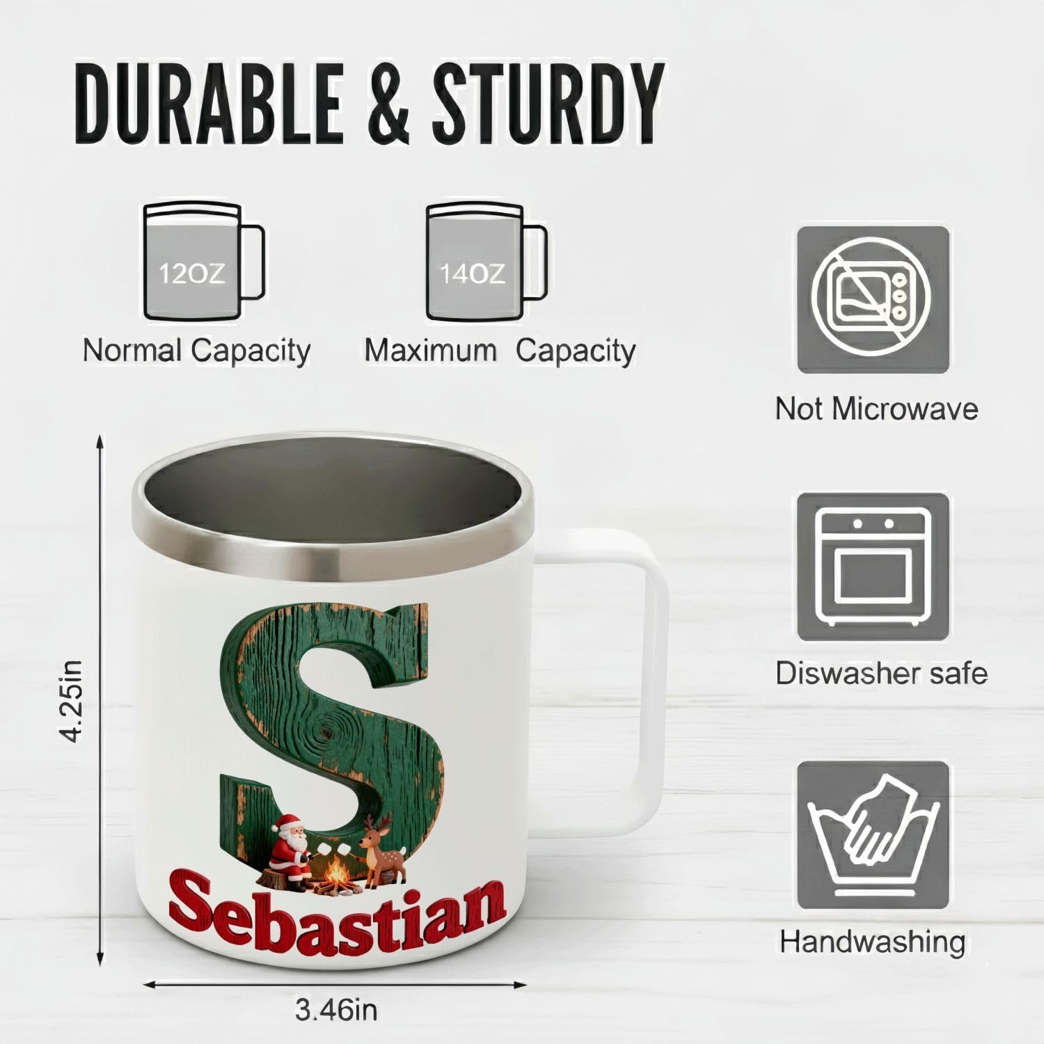 Celebrate the magic of the holiday season and create lasting memories with our exquisite Personalized Christmas Insulated Coffee Mug with Handle from [Your Brand Name]! This isn’t just a mug; it’s a warm embrace, a personal touch, and a daily reminder of your thoughtfulness, meticulously crafted to bring joy to every recipient. 🎁 Uniquely Tailored for Them with Cozy Holiday Charm: Transform a simple gift into a cherished keepsake! Each [Your Brand Name] mug is a bespoke masterpiece, proudly displaying a bold, rustic initial letter (like ‘A’ for Ava!) with a charming scene of Santa Claus and a friendly reindeer gathered around a cozy campfire. Their very own name is elegantly printed below, creating a truly personalized touch that makes it an unforgettable present for anyone on your list this Christmas, ensuring they feel incredibly special. ❄️ Superior Temperature Retention: Engineered with premium double-wall vacuum insulated 18/8 food-grade stainless steel, this travel mug is designed to maintain your beverages at their optimal temperature for extended periods. Enjoy piping hot coffee or tea for up to 6+ hours, and refreshing cold drinks icy for up to 12+ hours – perfect for chilly winter mornings, long commutes, or cozy evenings. 🎄 Immerse in Holiday Cheer: Get into the festive spirit with our charming Christmas-themed graphics! The eye-catching rustic initial design featuring a jolly Santa, a cute reindeer, and a glowing campfire creates a heartwarming and nostalgic holiday aesthetic. It’s the perfect accessory for festive gatherings, office holiday parties, or quiet moments by the fireplace, bringing a touch of warmth and whimsical cheer to every sip. ** ergonomic design & Everyday Practicality:** Designed with your comfort in mind, this [Your Brand Name] [Capacity, e.g., 16oz] mug boasts an ergonomic, easy-to-grip handle for effortless carrying. The secure, splash-proof lid ensures a spill-free experience, whether you’re at home, at work, or on the go. It’s not just a beautiful gift; it’s incredibly functional and built for daily use. 💡 The Ultimate Thoughtful Gift: Searching for that perfect, unique present for a family member, a best friend, a valued colleague, or a deserving teacher? This custom initial and name mug is an exceptional choice. It’s ideal for Christmas, White Elephant exchanges, Secret Santa, birthdays, anniversaries, or simply to say “I love you” in a wonderfully personal way. Give the gift of warmth, personality, and enduring holiday spirit this season!