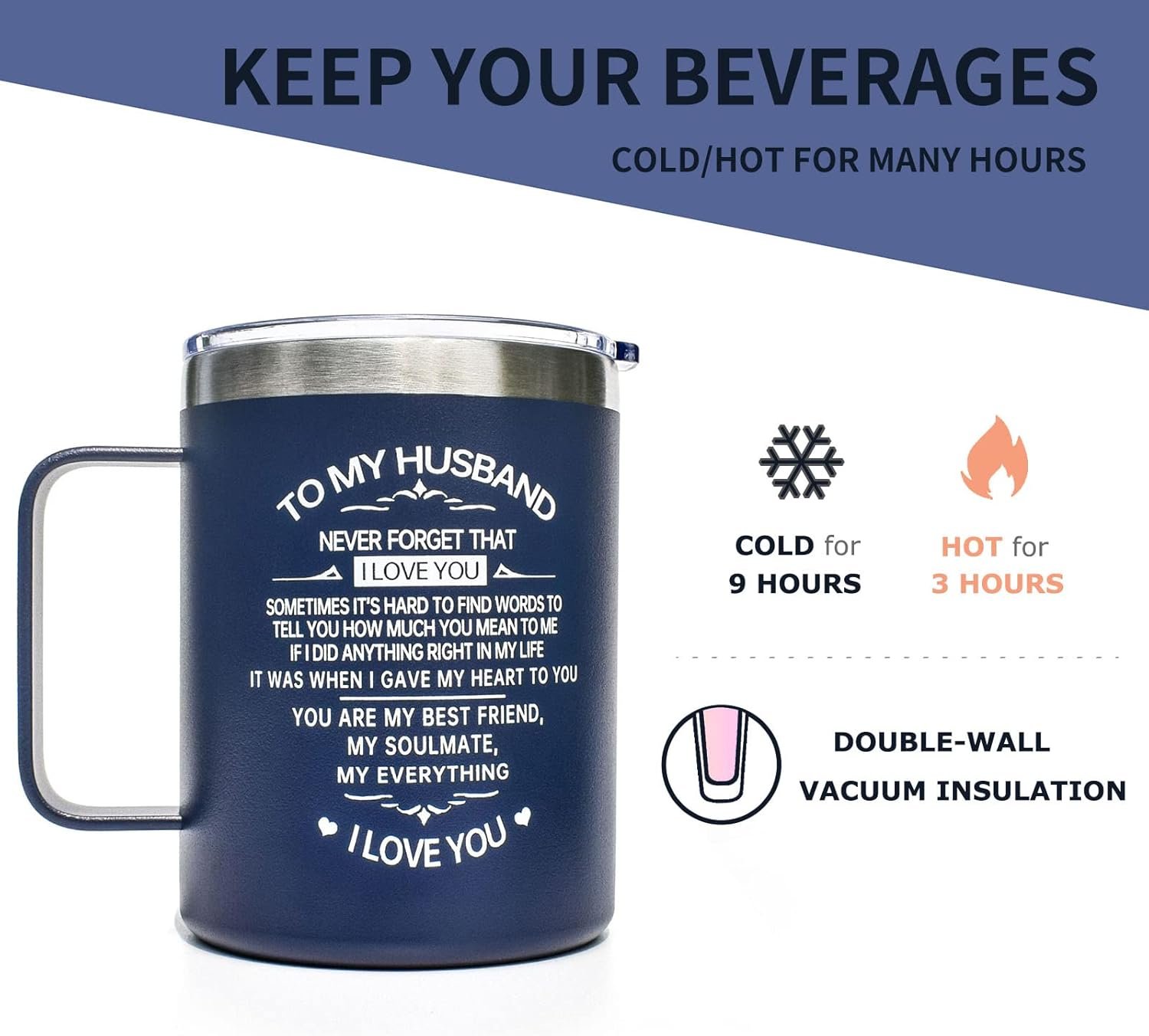 【Great Gifts for Men】This personalized cup is a great gift ideas for husband from wife on a special day, such as birthday, anniversary, Valentine’s Day, Thanksgiving Day, Christmas to express their love and appreciation.