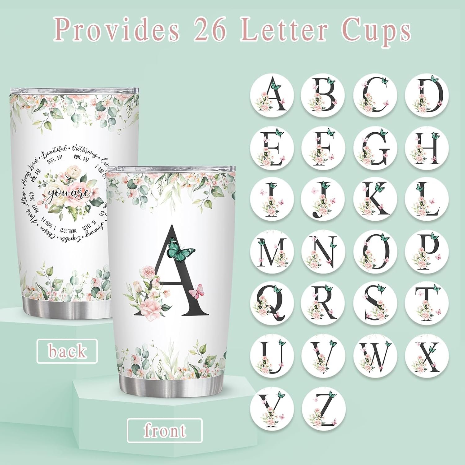 Personalized Initial A Tumbler 20oz, Monogrammed Gift for Women Birthday Mothers Day Religious Gift, Personalized Christian Gift for Women Initial Coffee Mug