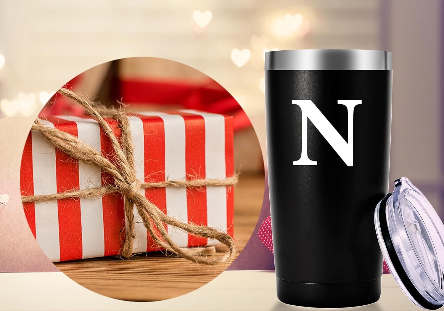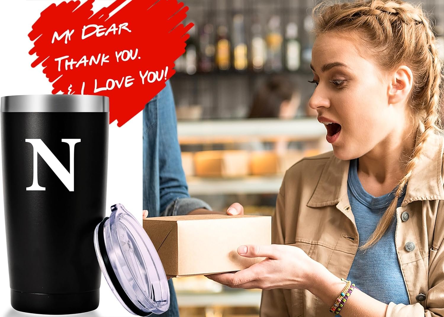 Personalized Initial Tumbler.Monogrammed Custom Initial Tumbler N.Unique Initial Tumbler Cup Gifts for Men Women. Novelty Birthday Christmas Party Graduation Wedding Gifts.(20oz Black)