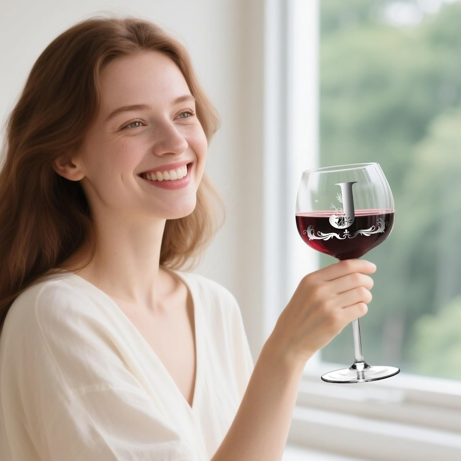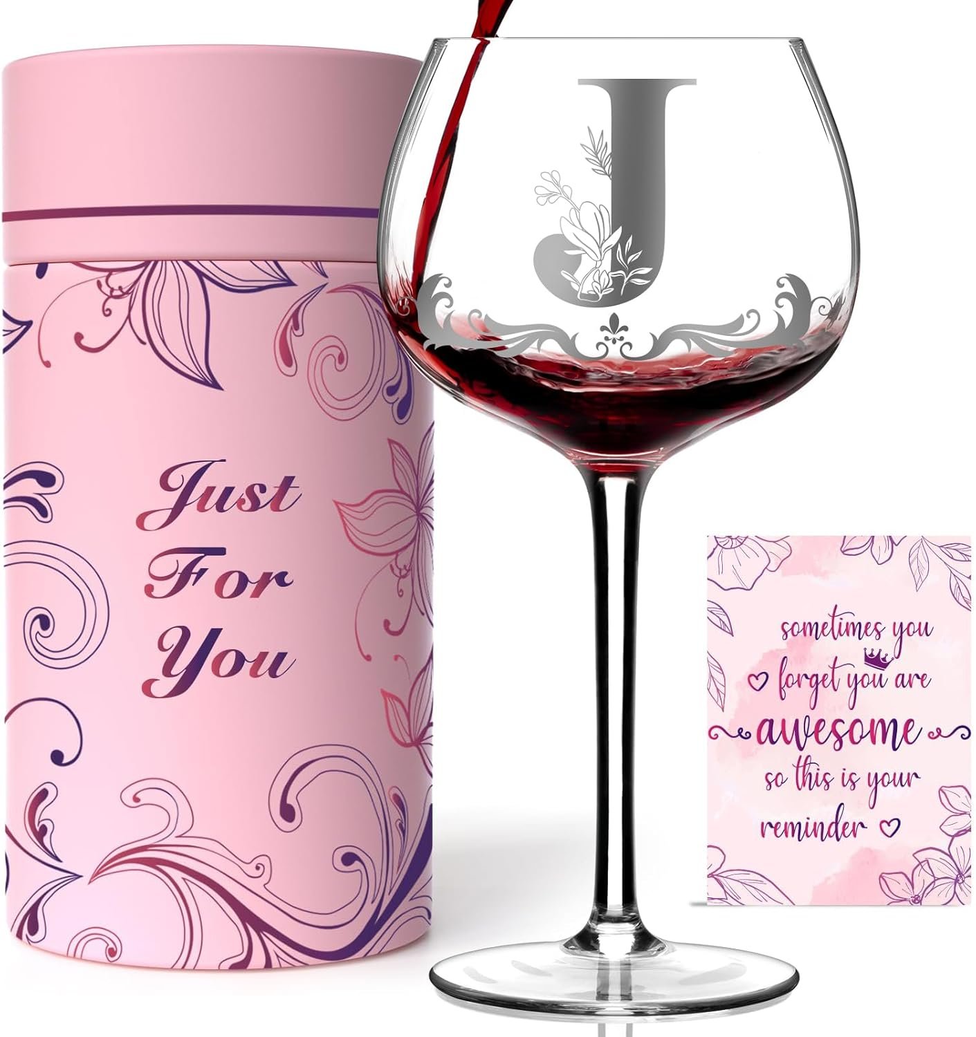 Personalized Monogram Gifts for Women – Customized Initial A-Z Wine Glass, Unique Christmas Birthday Gifts for Her, Mom, Wife, Sister, Daughter, Friend (Letter J)