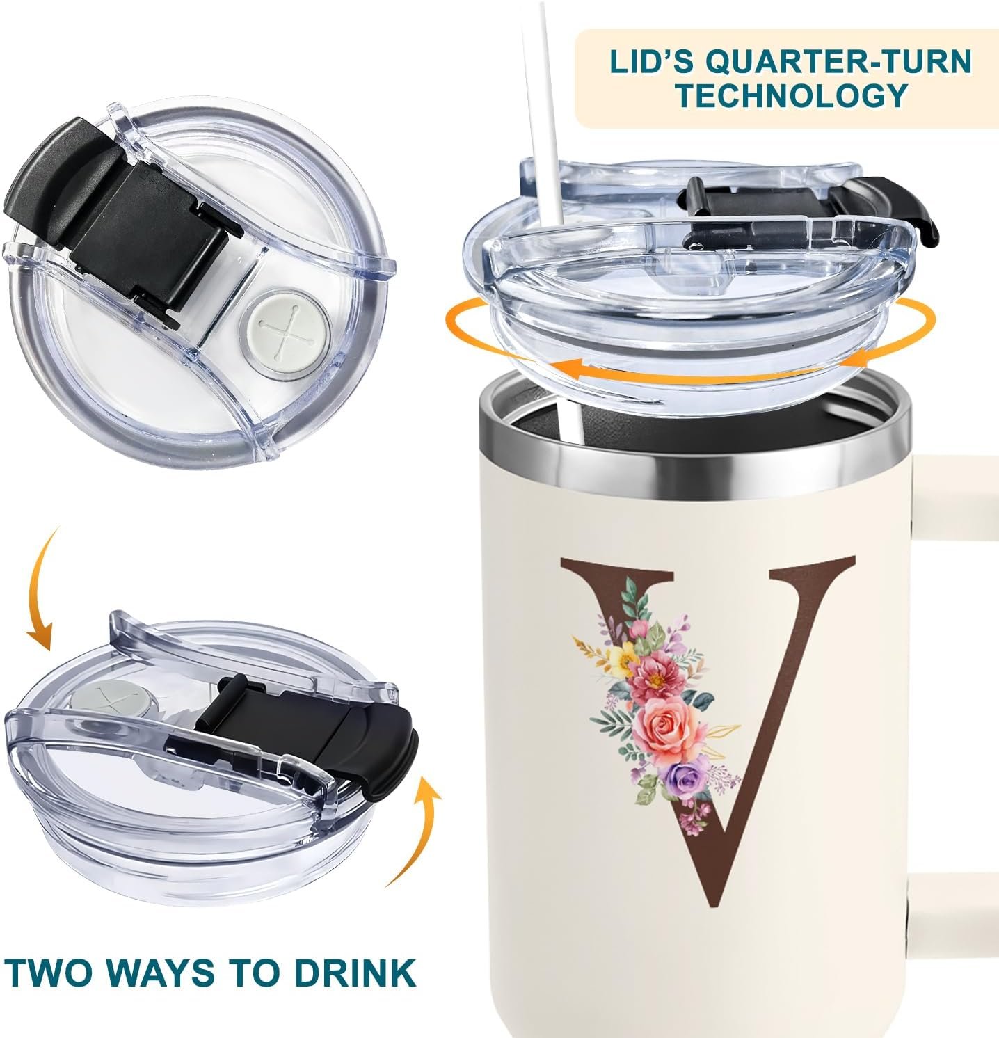 Personalized Monogrammed 40oz Stainless Steel Tumbler With Handle – Custom Gifts For Women – Mom, Wife, Best Friend, Sister, Coworkers – Ideal For Birthday, Christmas, Mothers Day