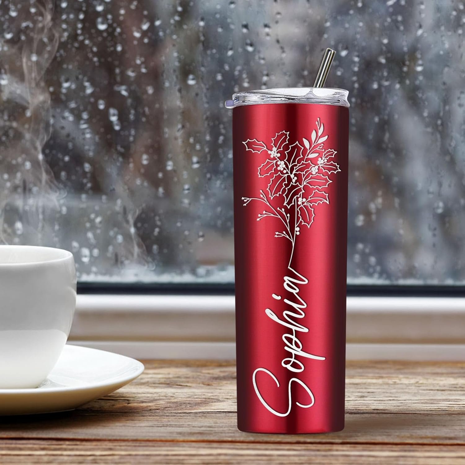🛒🛒【Personalized Skinny Tumblers】Personalized cup with 12 birth flowers, select the matching birthday flower, enter your name, add to cart and pay. Come and customize name tumbler!