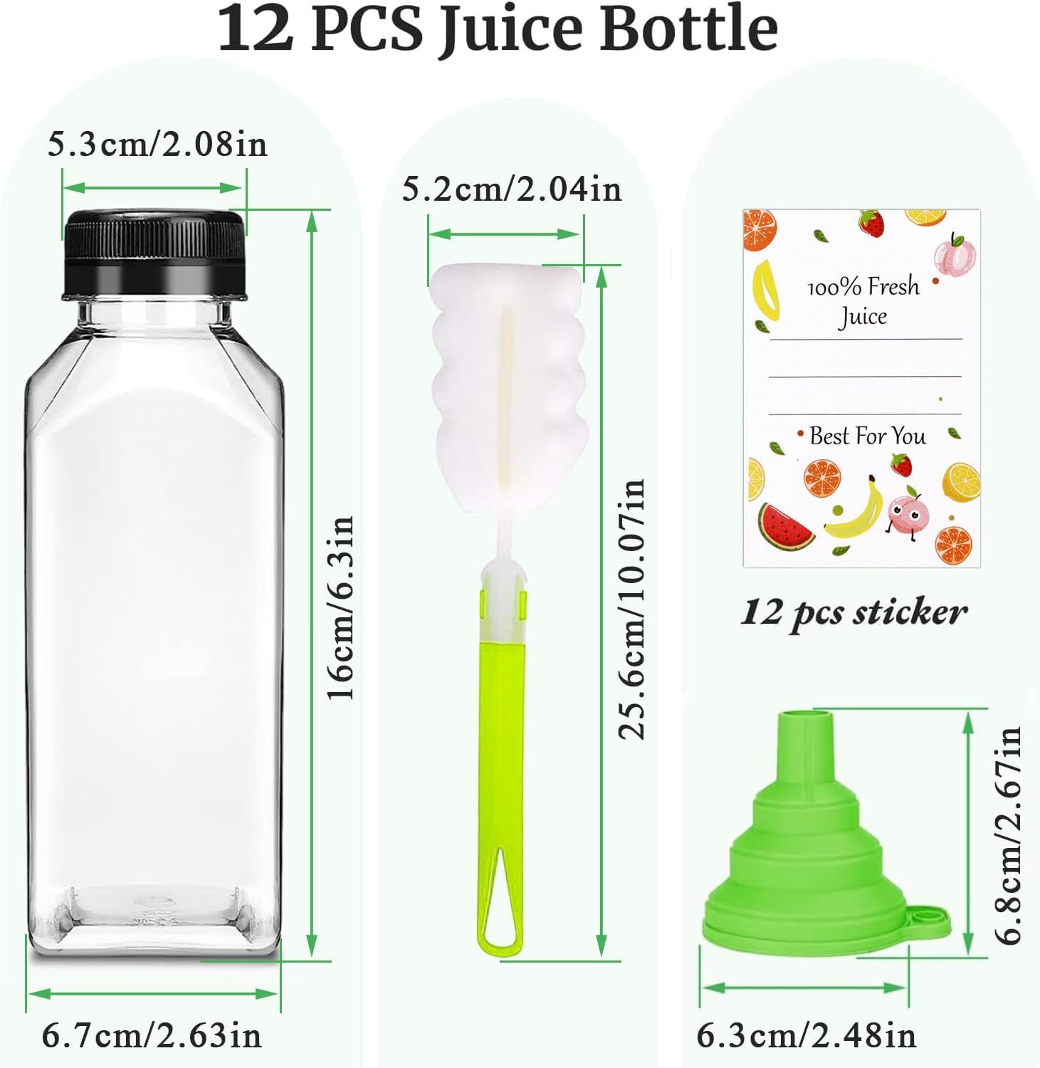 [OUTSTANDING AIR TIGHTNESS] Plastic juice bottles with caps comes with 12 labels and silicone funnels. The tamper-evident caps form an airtight, leak-proof seal to keep them fresh. You can keep them in your backpack, refrigerator, car, or store them without worrying about the mess.