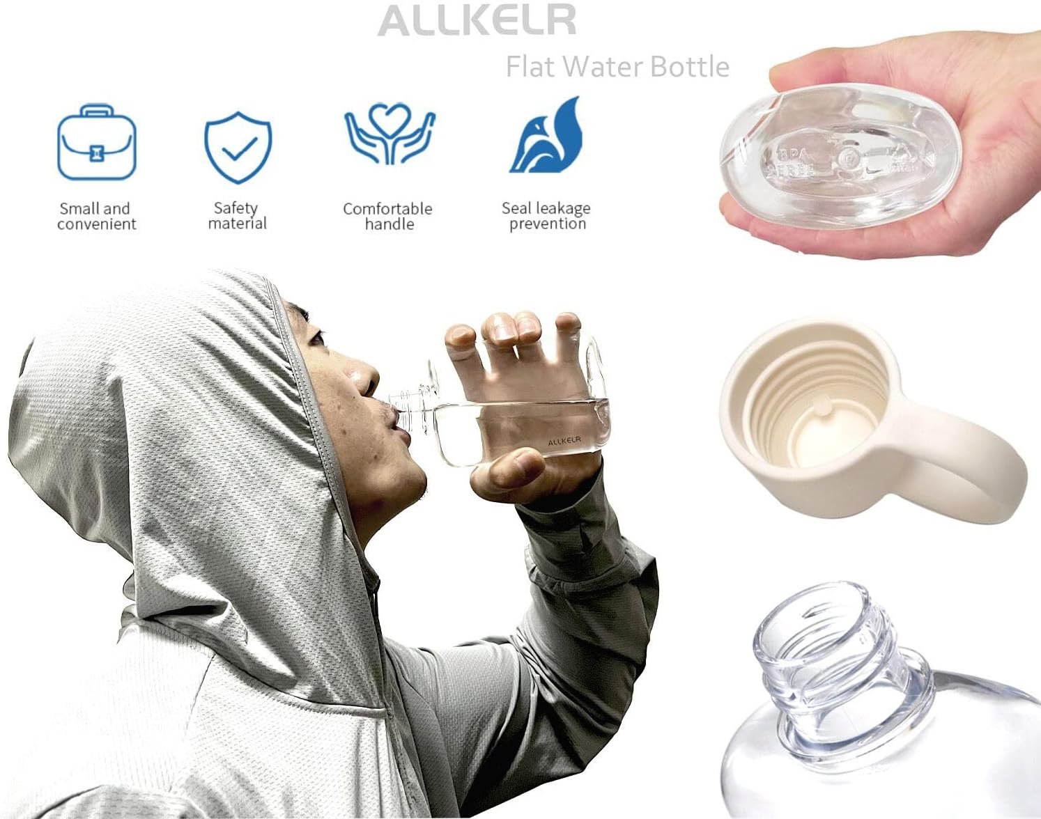 This oval flat water bottle is made of high-quality Tritan material and does not contain BPA. The bottle body is transparent, the unique mini mug shape of the bottle cap, and the built-in food-grade leak-proof silicone ring, their combination makes the water bottle more simple and fashionable. At the same time, its oval flat design makes this travel water bottle fit perfectly in your hand. Whether it’s camping, fitness, or office, it becomes a memo water bottle to carry around.