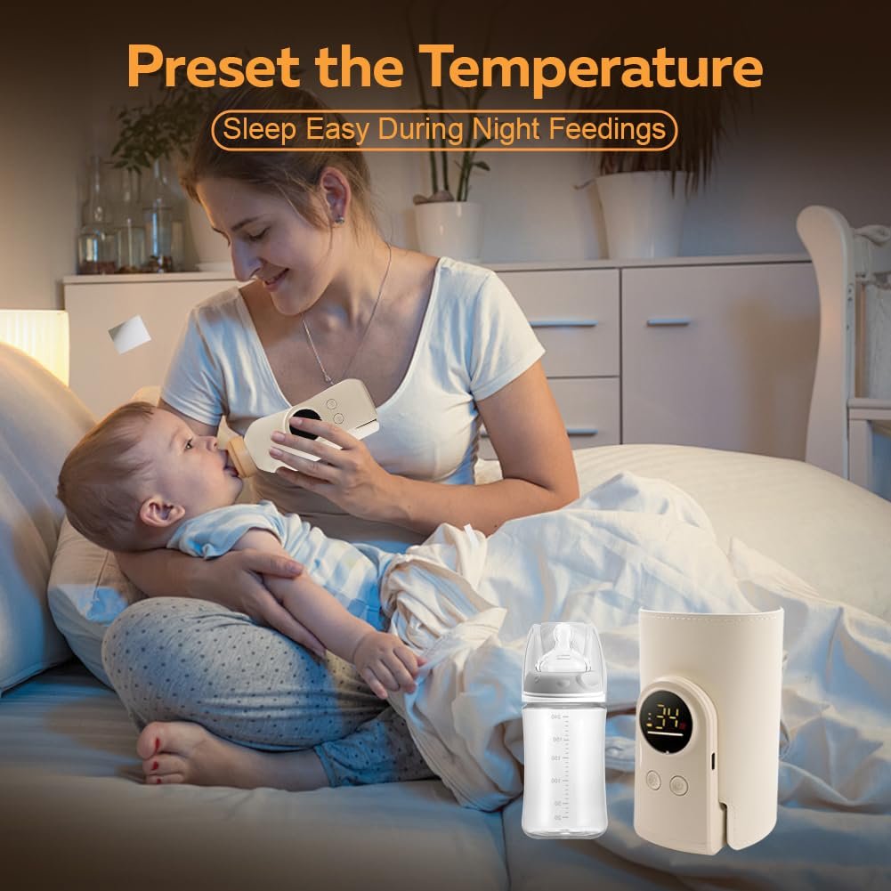 Portable Milk Warmer for Travel, On The Go Baby Bottle Warmer, Waterless Bottle Warmering with Battery-Powered for Home Outdoor, Fast Heating & Precise Temperature Control with LCD Display