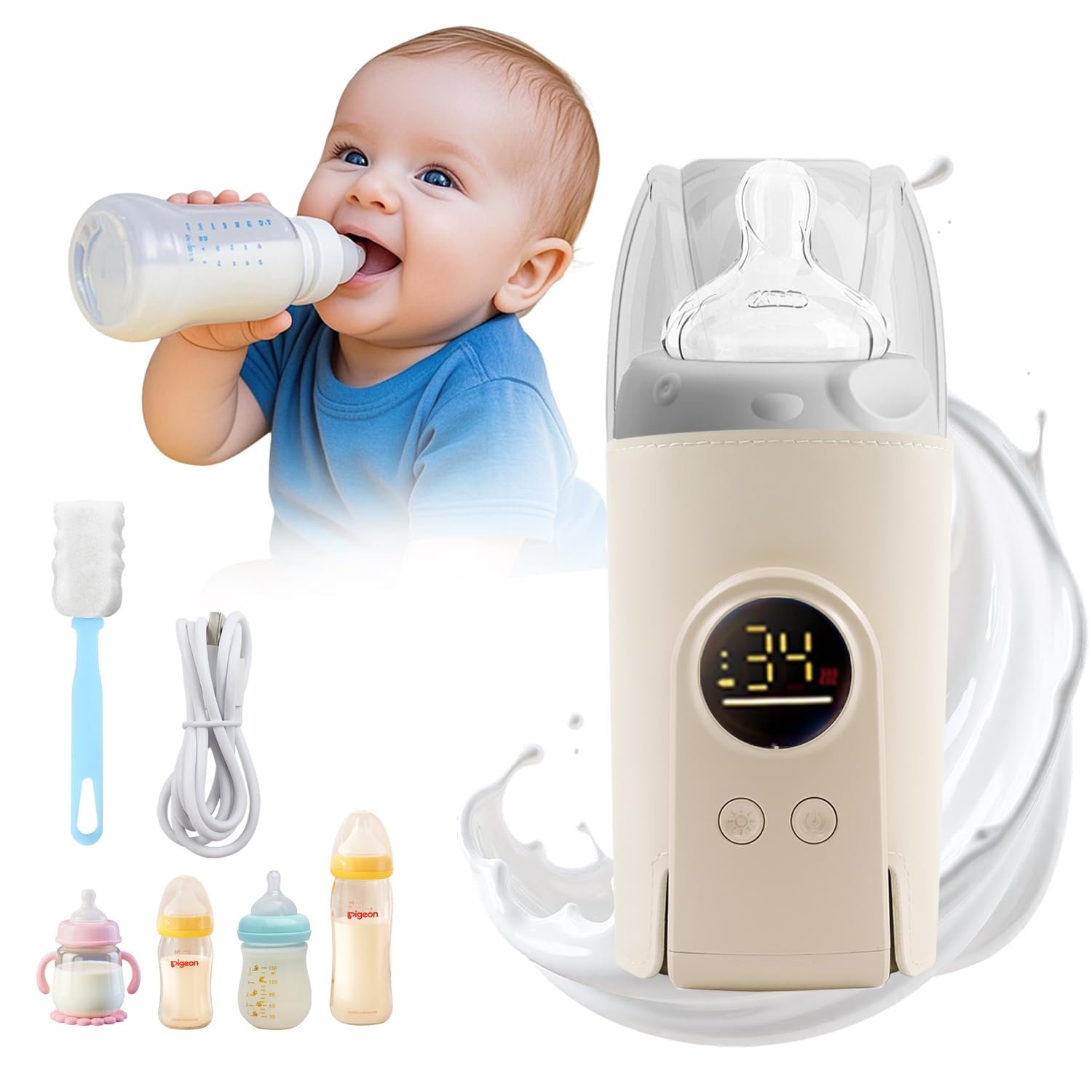 【6-speed Precise Temperature Control】The waterless bottle warmer features 6-speed temperatures starting from 38℃ – 50℃ (100°F – 122°F) shown on the LCD screen. Special for baby, it’s perfect for warming breastmilk and formula. The package includes a 9V – 2A USB cord, compatible with mobile appliances and power banks, ensuring convenience for travel, outdoors, hotels, and home use.