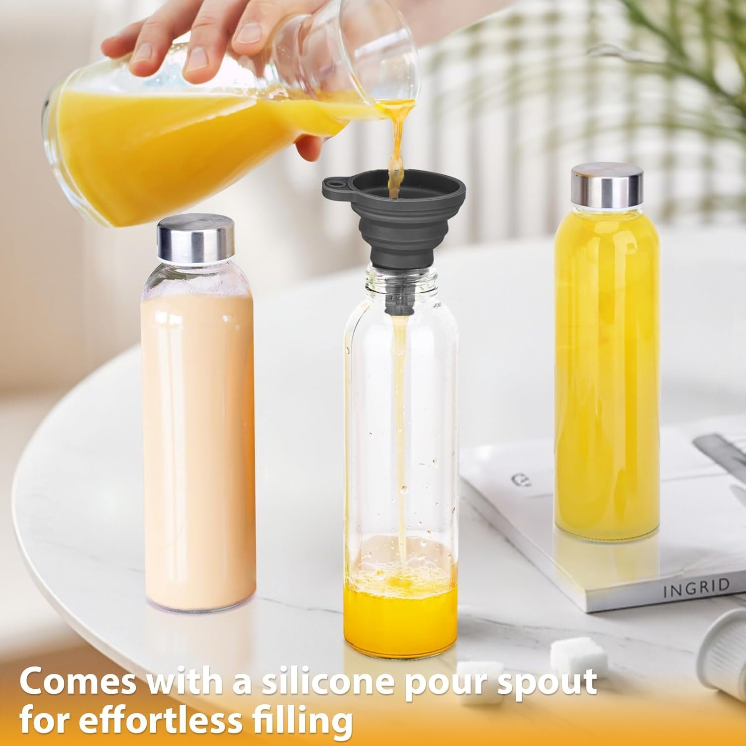 Durable & High Quality Glass : Made from thick, BPA-free glass, these glass juice bottles are designed for long-term use with excellent impact resistance. The sturdy construction ensures your beverages stay fresh while reducing the need for disposable bottles.