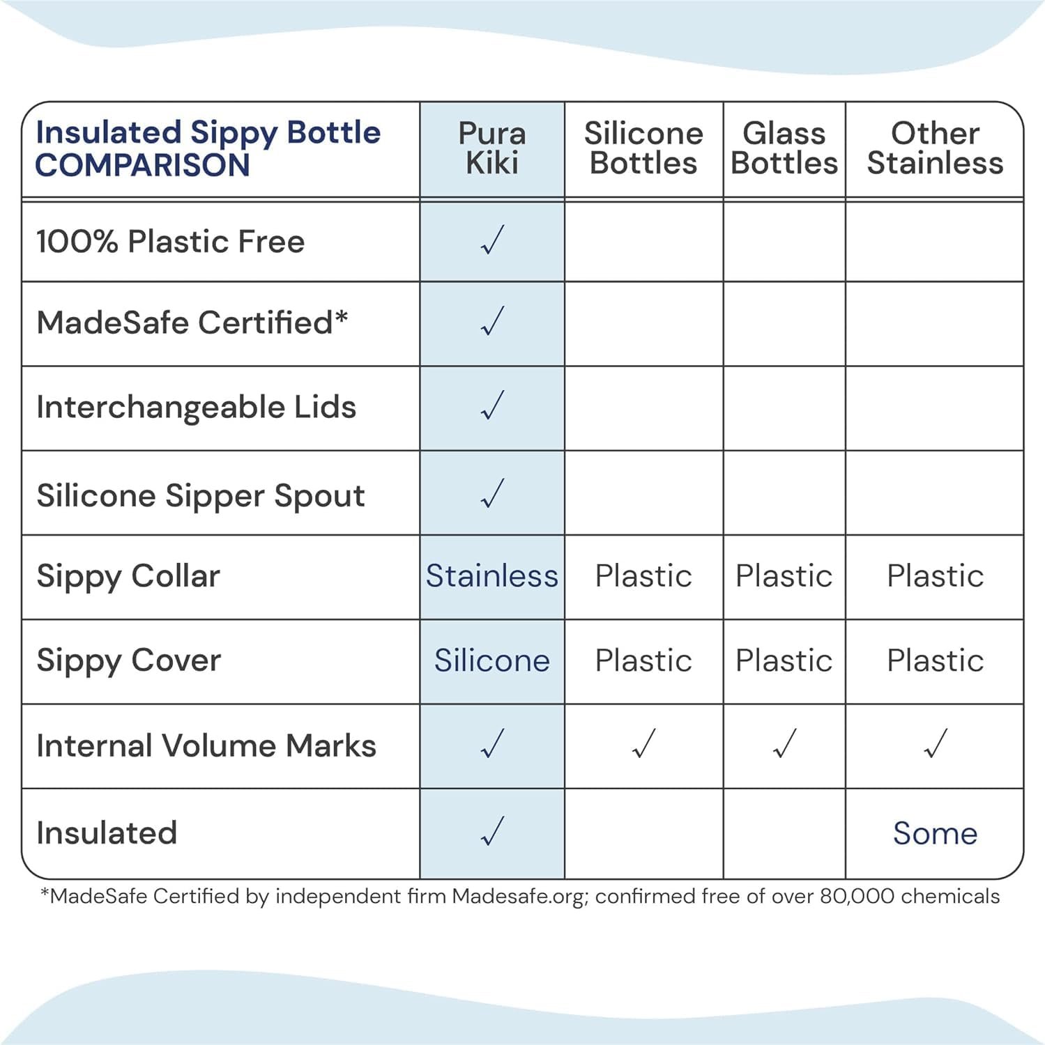 MULTI-USE TODDLER SIPPY CUP AND KIDS WATER BOTTLE: 100% Plastic-free, stainless steel sippy cup easily transforms into an infant bottle, straw bottle, sport bottle, or snack container with medical-grade silicone components from Pura. Baby Grows…Bottle Evolves.