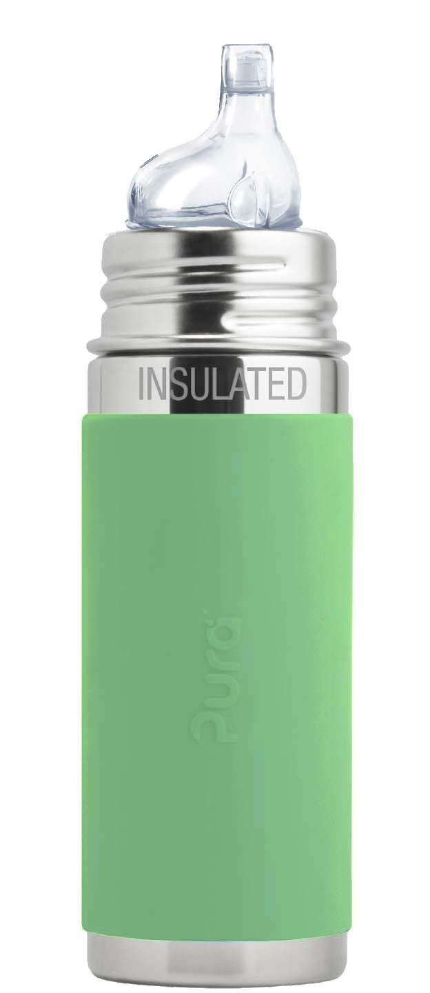 Pura Kiki 9oz/260ml Stainless Steel Insulated Sippy Bottle w/Sleeve, Plastic-Free, MadeSafe Certified, Medical-Grade Silicone Sipper Spout Fast Flow Rate for Kids, Toddlers, Babies & Infant – Moss