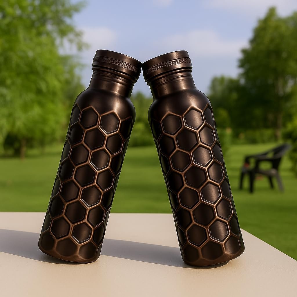 Coppera Ayurora Pure Copper Water Bottle – Antique Honeycomb – 27 oz | Handmade Ayurvedic Copper Vessel for Health & Wellness | Leak-Proof, BPA-Free, Eco-Friendly Gift Bottle