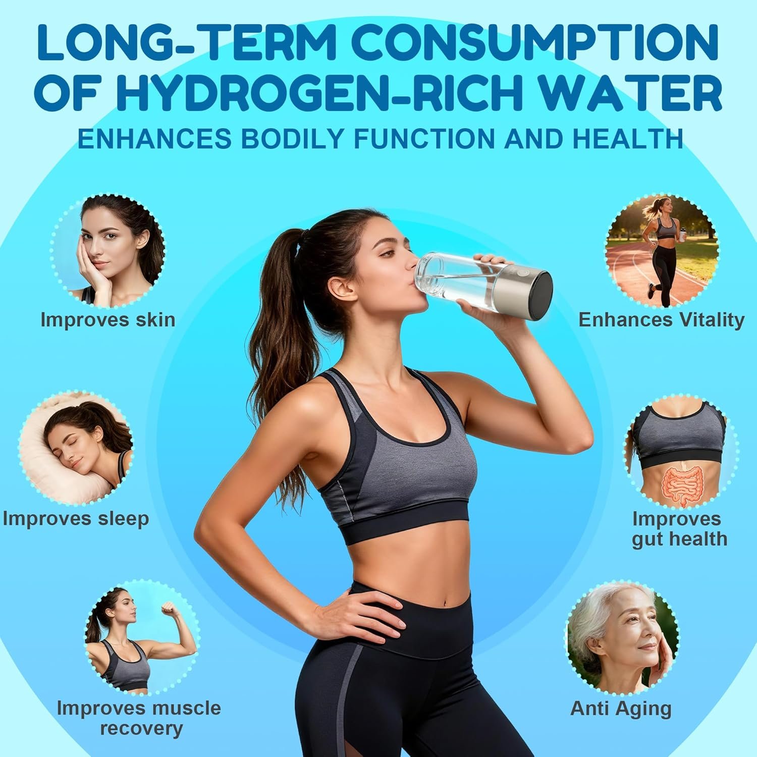14 oz / 420 ml Hydration Capacity Larger capacity hydrogen bottle provides more hydration per fill for gym, office, travel, cycling, yoga, fitness and everyday use