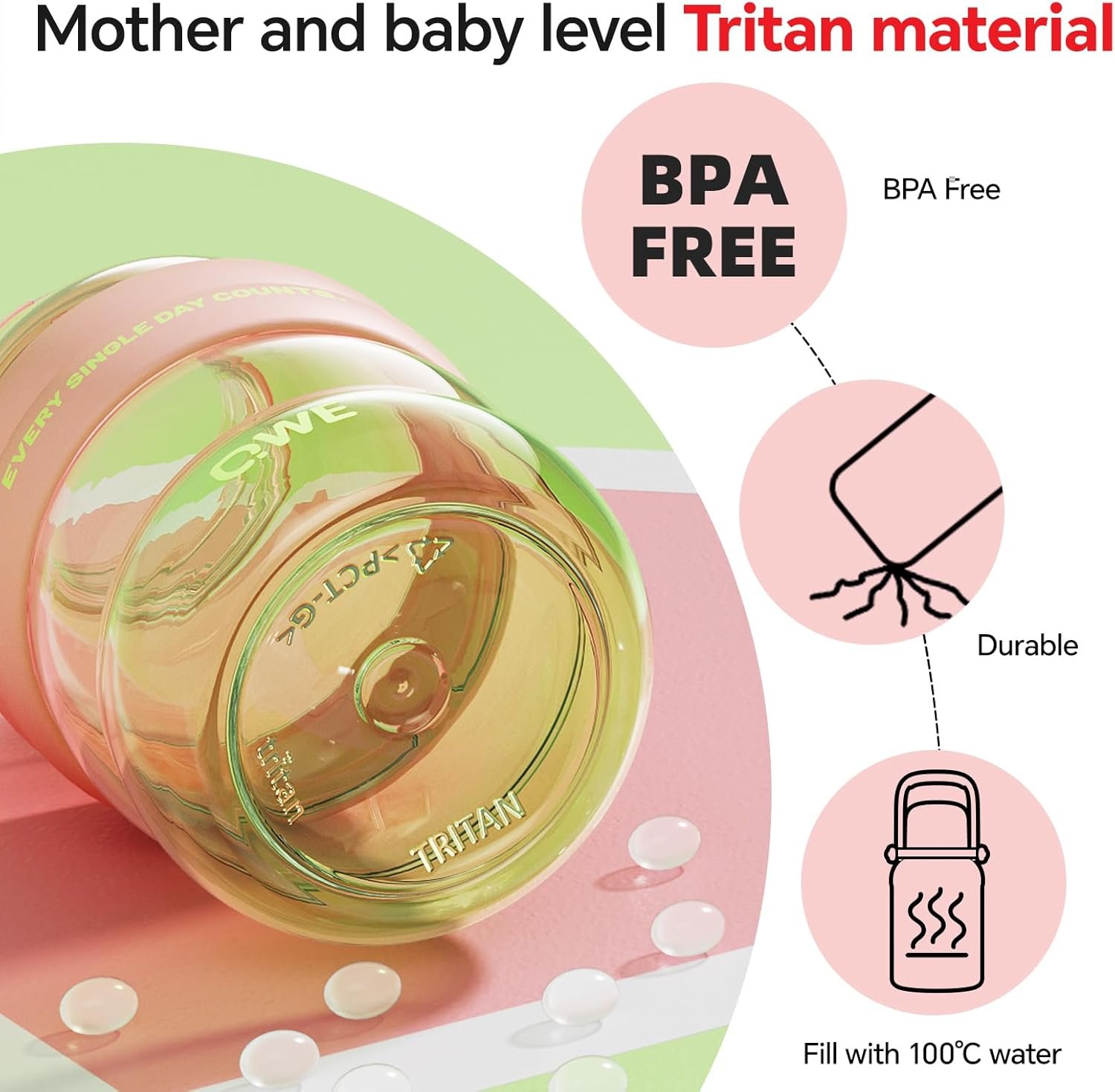 3. 【Safe Material · Good for All Drinks】 Made with the same kind of material as baby bottles (PCT-G). It has no BPA, no bad smells, and handles hot and cold drinks well. Safe for hot water, juices, sports drinks, and more. Meets safety standards for food contact—so your drinks stay clean and healthy, no matter where you are.
