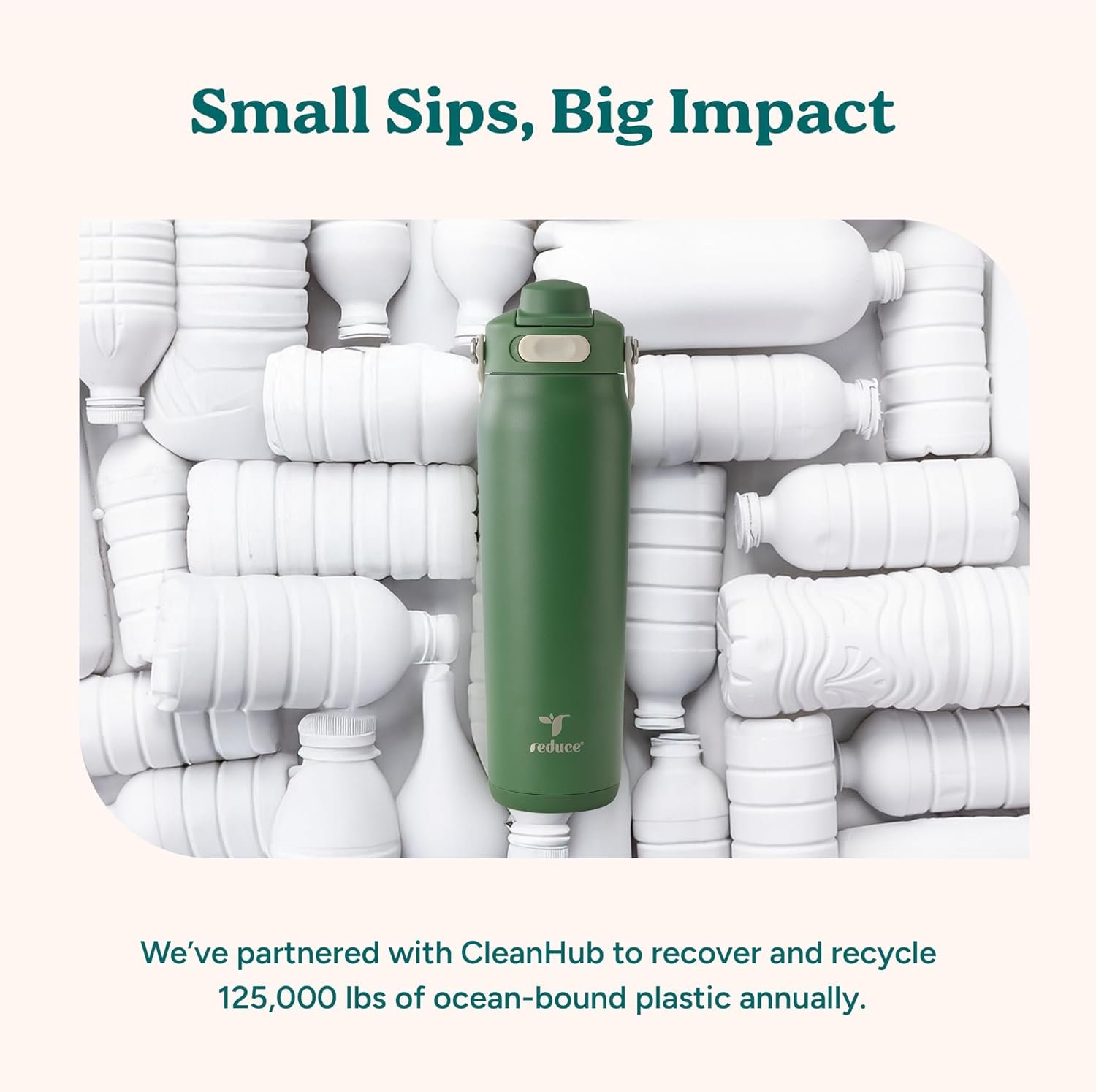 REDUCE Aura Vacuum Insulated 26 oz Water Bottle – Leak-Proof & Chug Spout for Quick Hydration – Keeps Drinks Cold for 30 Hours – Removable Handle for Travel or Gym – Soft Sit Base – Mineral Blue