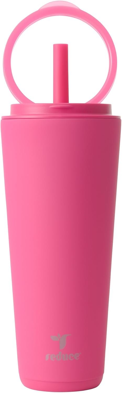 REDUCE Halo 32 oz Stainless Steel Vacuum Insulated Tumbler – Spill Proof Travel Mug with Flip Handle Lid – Keeps Drinks Cold for 32 Hrs – Dishwasher Safe – Cupholder Friendly – Dragon Fruit