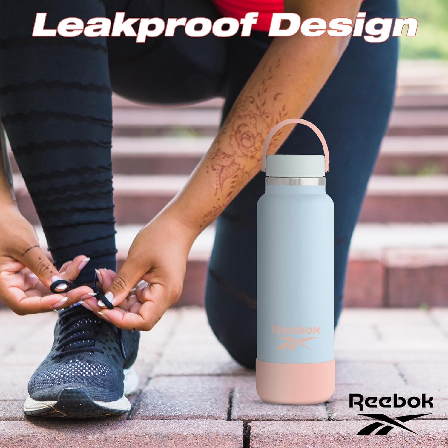 INSULATED WATER BOTTLE WITH HANDLE & SILICONE SLEEVES: Reebok stainless steel insulated water bottle with handle and Silicone Boot boasts an advanced leak-proof design, making it the perfect companion for any active lifestyle. The secure seal not only prevents spills but also ensures that your drink stays fresh and at the desired temperature for longer periods.